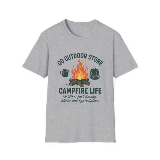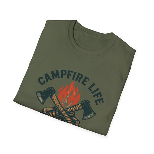 Campfire Life Unisex Softstyle T-Shirt, Outdoor Adventure Tee, Camping Gift, Nature Lover Apparel, Summer Fun Shirt, Bonfire Party Outfit