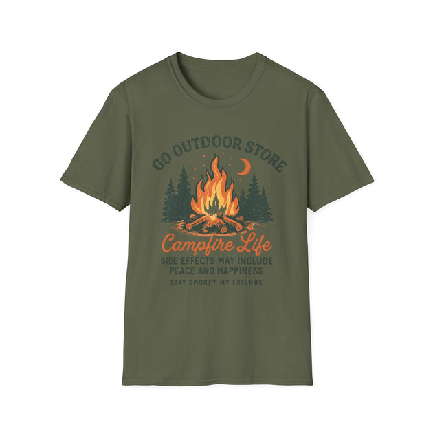 Campfire Life Unisex Softstyle T-Shirt, Outdoor Adventure Tee, Nature Lover Shirt, Camping Gift, Peace and Happiness Apparel