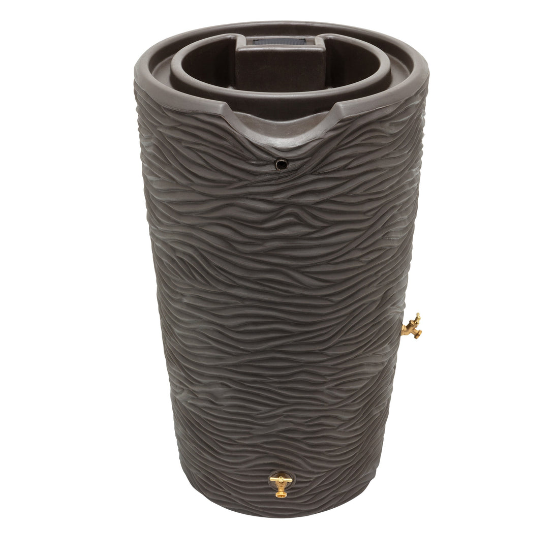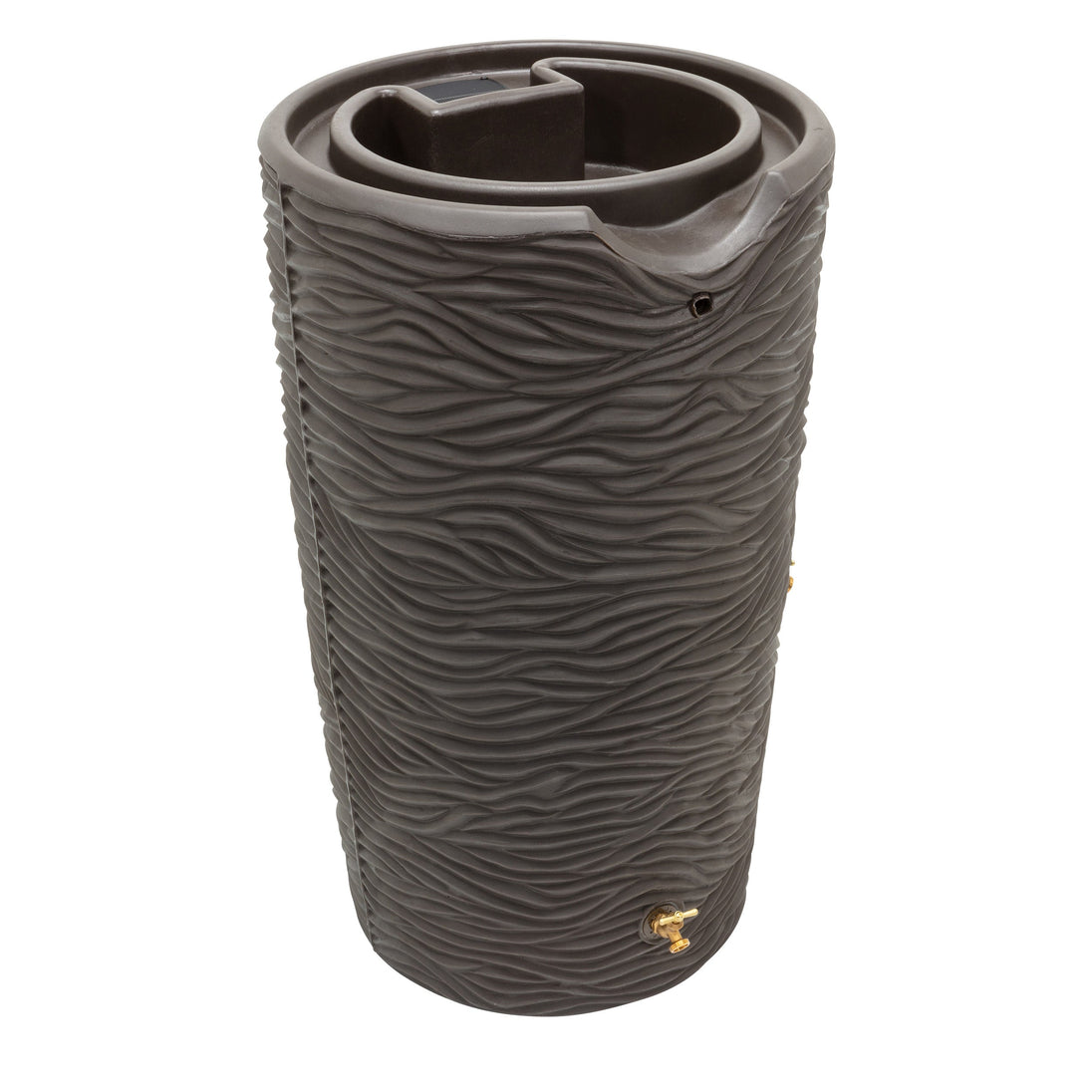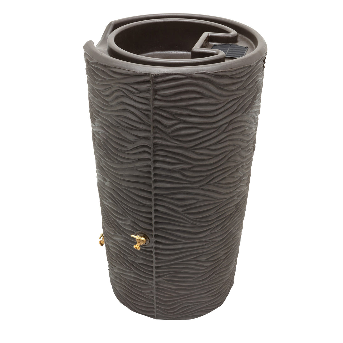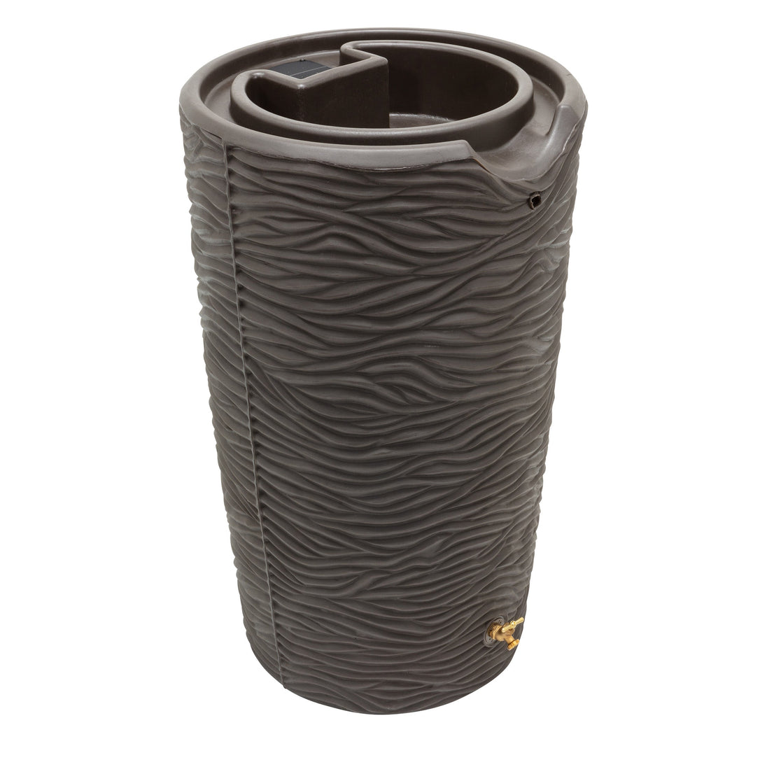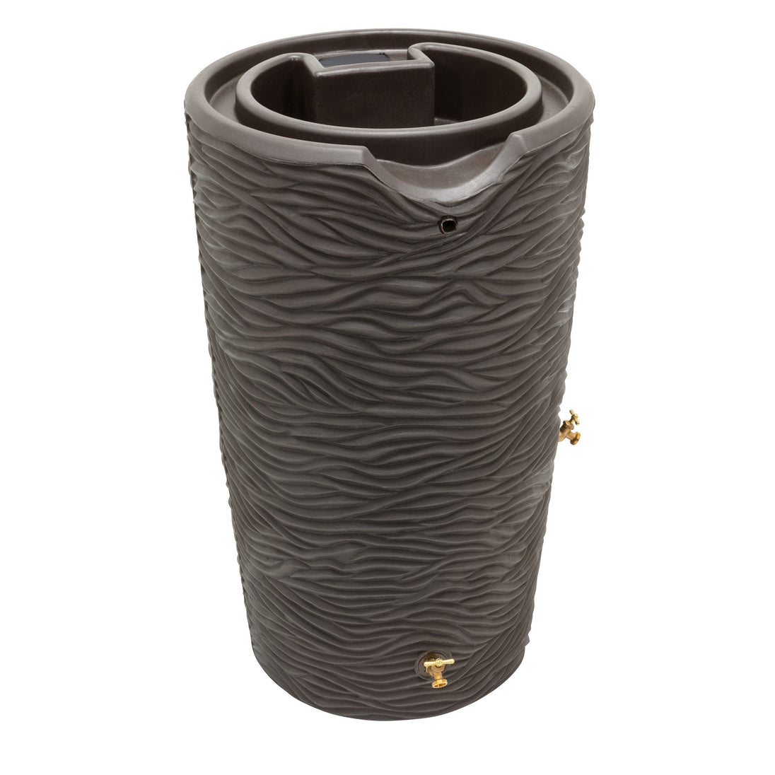The Impressions Palm 65 Gallon Rain Saver is one of the sturdiest and most eye-catching rain barrels on the market. Its appearance emulates the rough texture of a palm tree trunk, and with a deep welled top, you can plant an array of flowers or even a small herb or vegetable garden. The top also includes the Good Ideas original, integrated channel that automatically diverts overflow to the front of the barrel and keeps your foundation from flooding. The large opening can be used for 2x3 or 3x4 downspouts and is covered with a soft, fine mesh, plastic screen that keeps out heavy debris. Also included with the barrel are two sturdy brass spigots to install in the offset spigot locations.