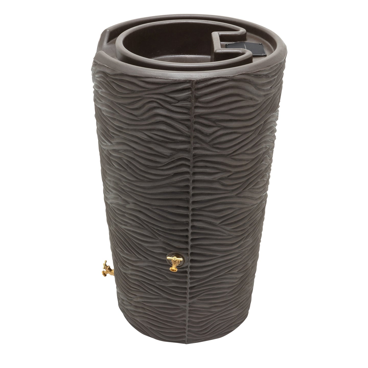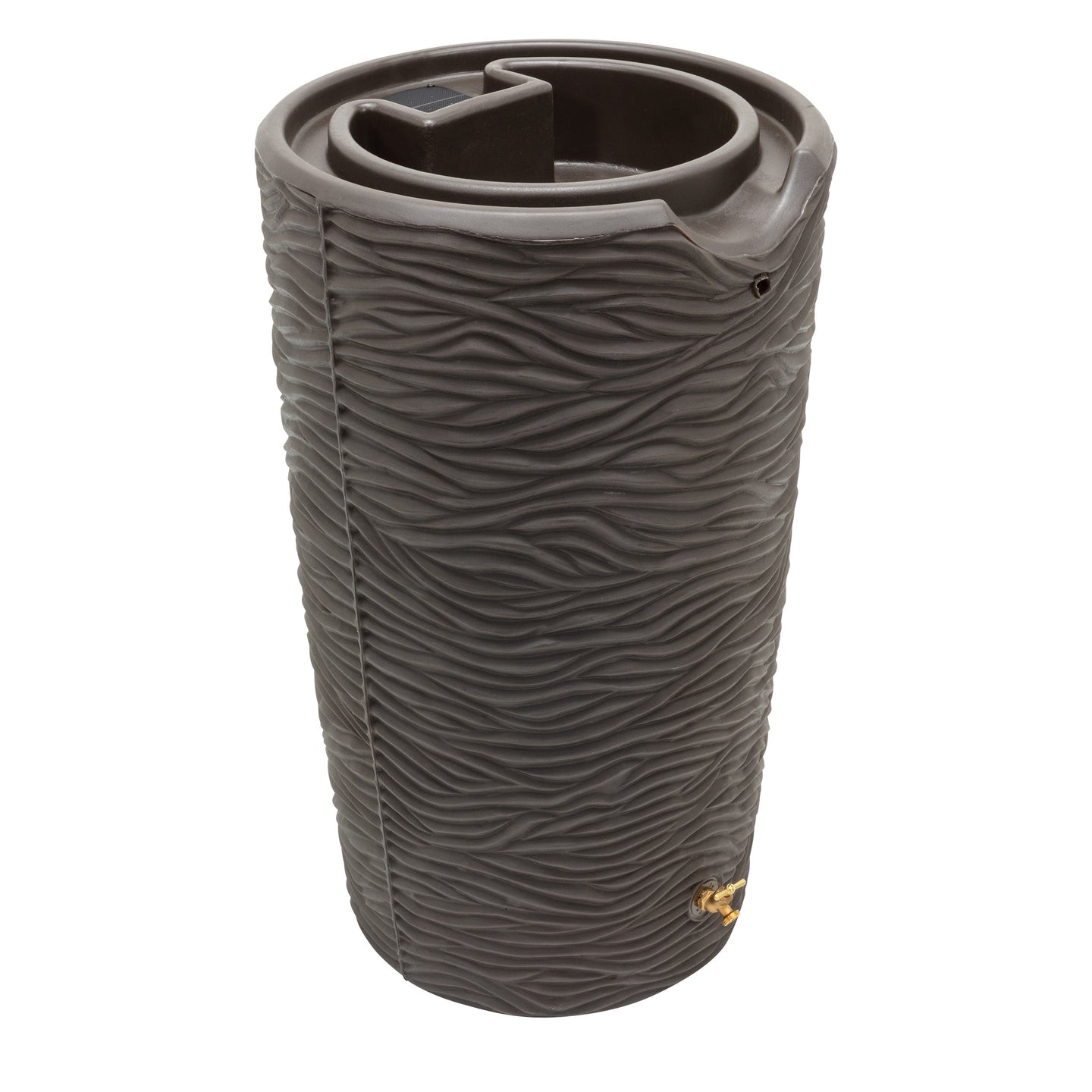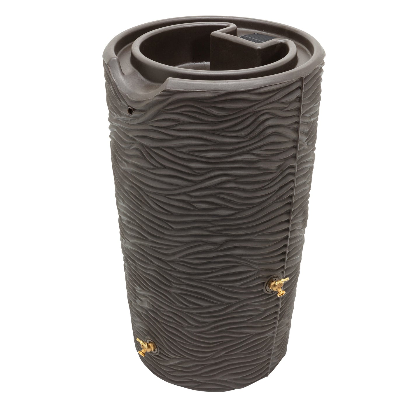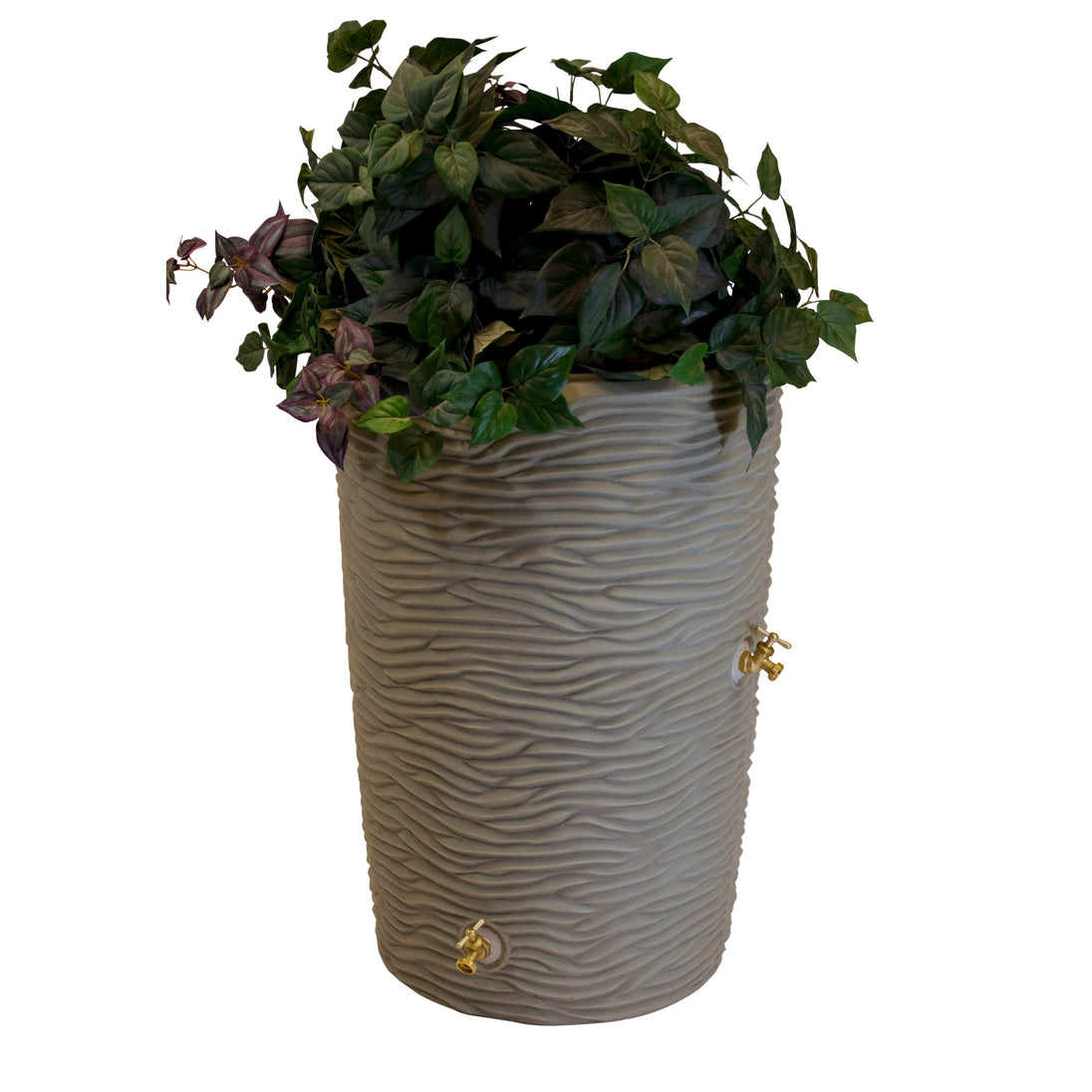 The Impressions Palm 65 Gallon Rain Saver is one of the sturdiest and most eye-catching rain barrels on the market. Its appearance emulates the rough texture of a palm tree trunk, and with a deep welled top, you can plant an array of flowers or even a small herb or vegetable garden. The top also includes the Good Ideas original, integrated channel that automatically diverts overflow to the front of the barrel and keeps your foundation from flooding. The large opening can be used for 2x3 or 3x4 downspouts and is covered with a soft, fine mesh, plastic screen that keeps out heavy debris. Also included with the barrel are two sturdy brass spigots to install in the offset spigot locations.