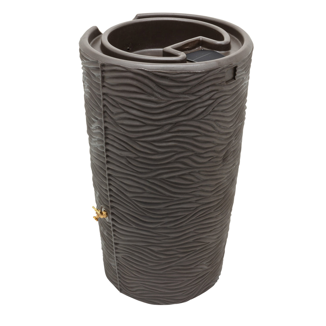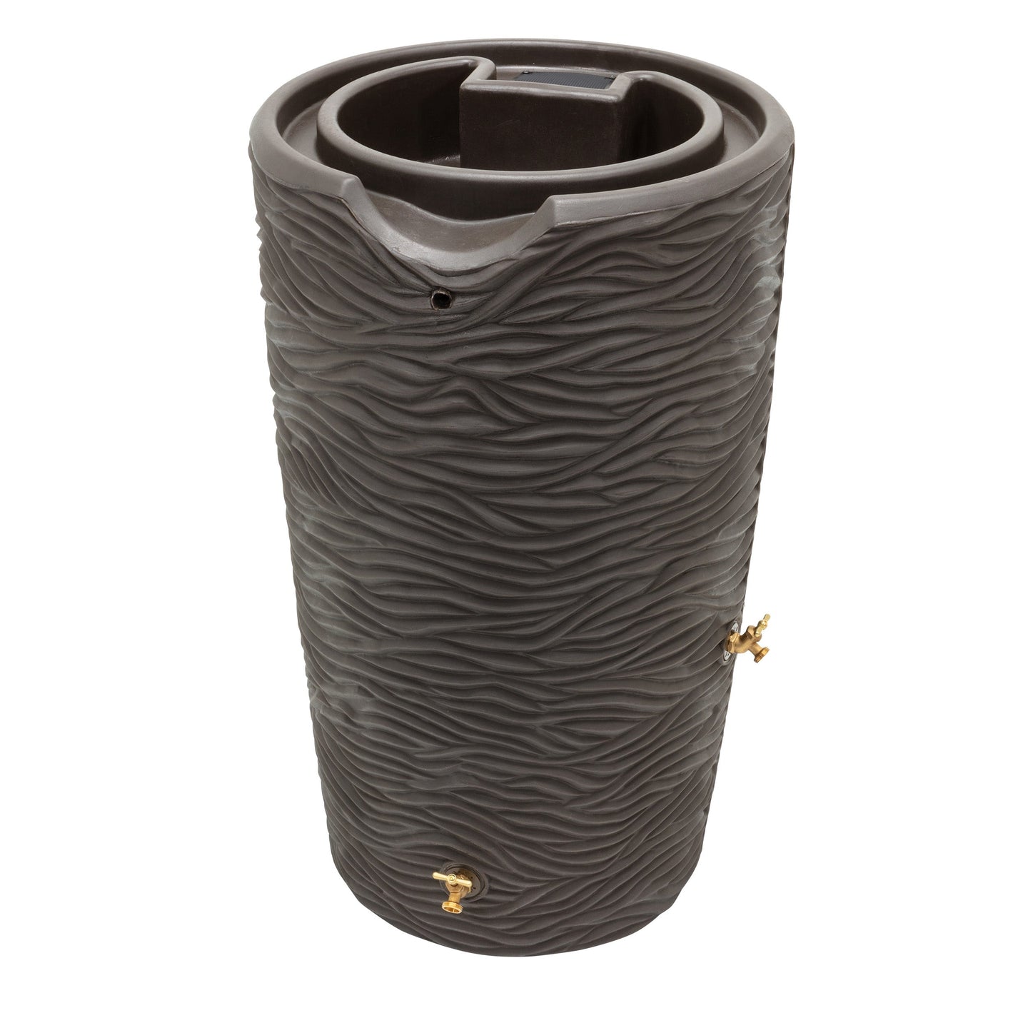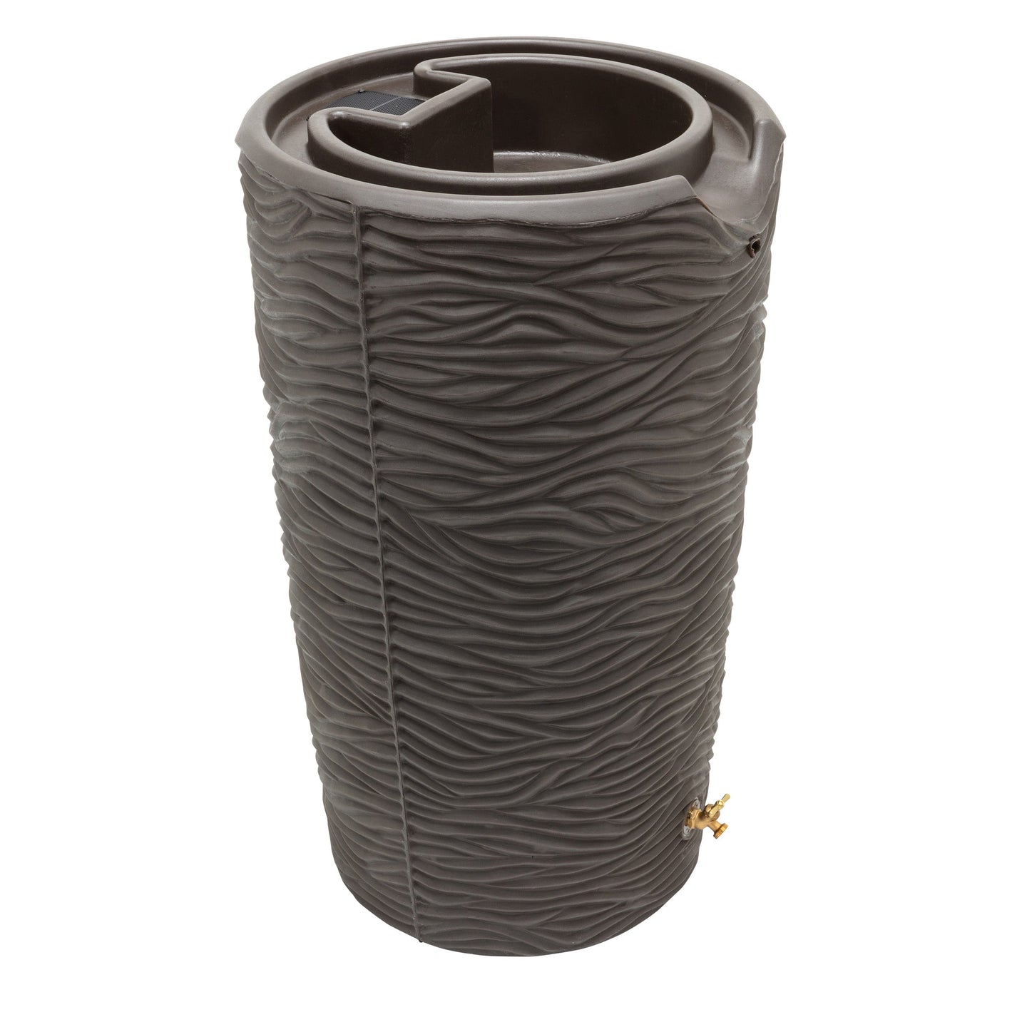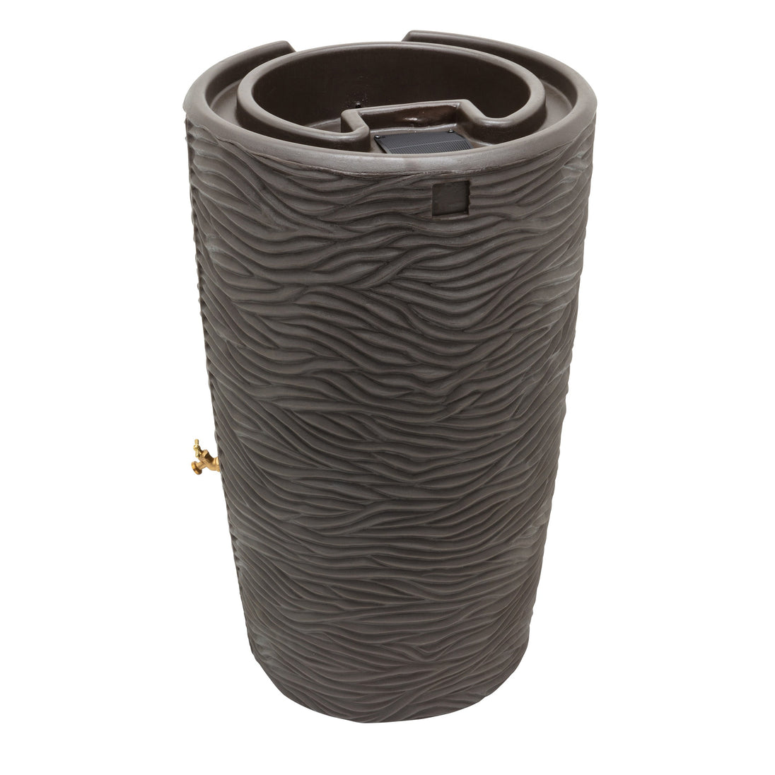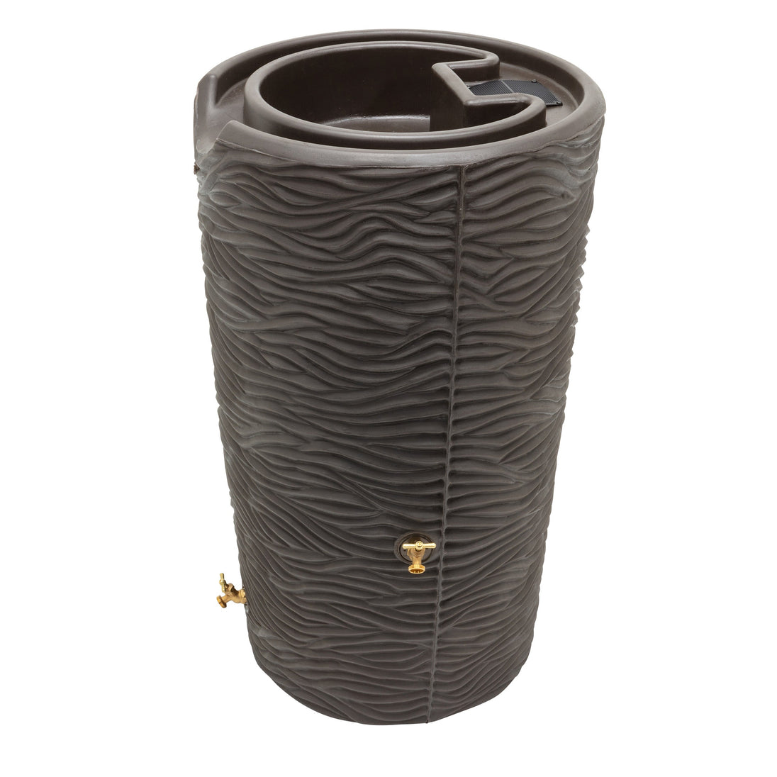 The Impressions Palm 65 Gallon Rain Saver is one of the sturdiest and most eye-catching rain barrels on the market. Its appearance emulates the rough texture of a palm tree trunk, and with a deep welled top, you can plant an array of flowers or even a small herb or vegetable garden. The top also includes the Good Ideas original, integrated channel that automatically diverts overflow to the front of the barrel and keeps your foundation from flooding. The large opening can be used for 2x3 or 3x4 downspouts and is covered with a soft, fine mesh, plastic screen that keeps out heavy debris. Also included with the barrel are two sturdy brass spigots to install in the offset spigot locations.
