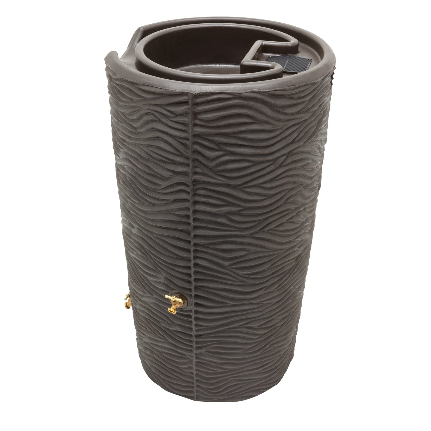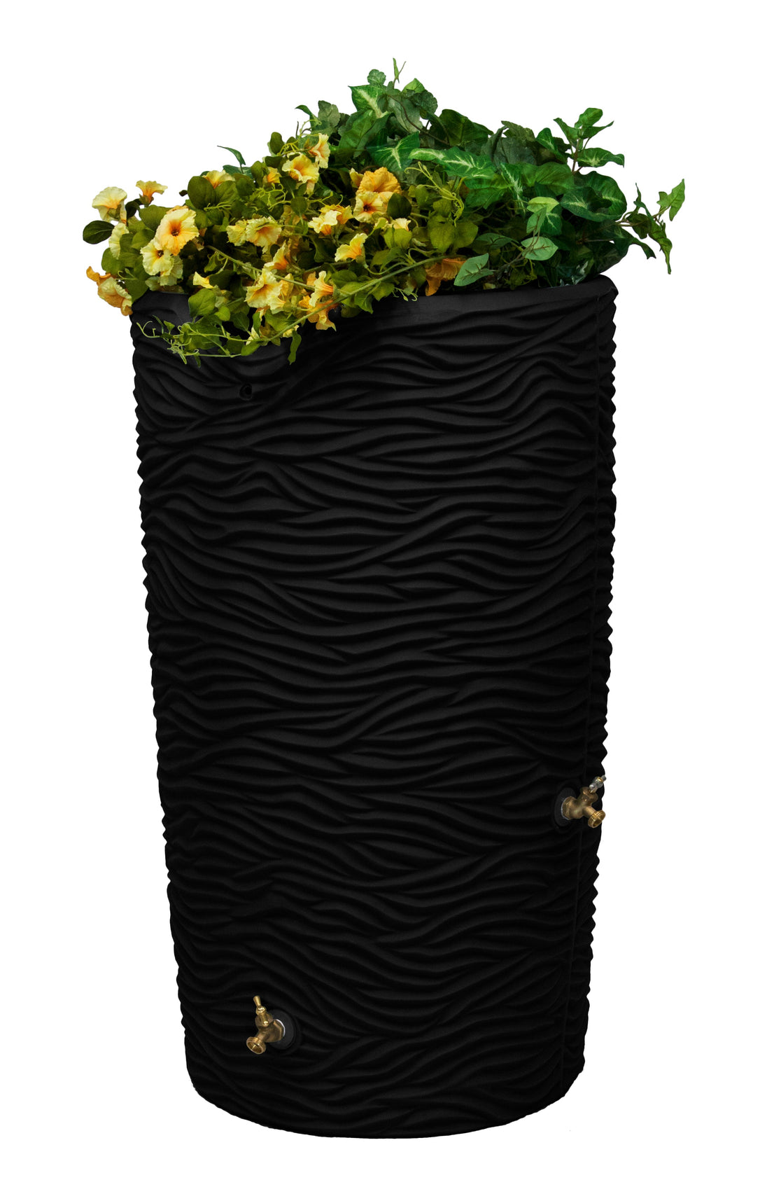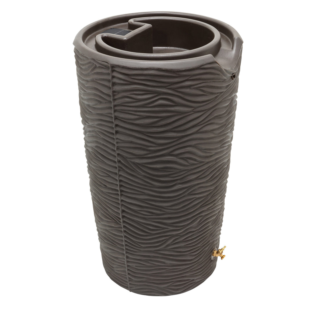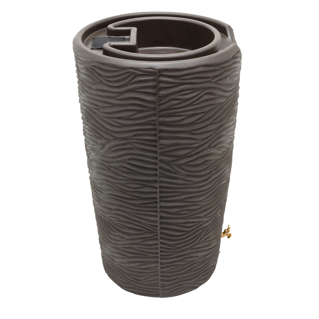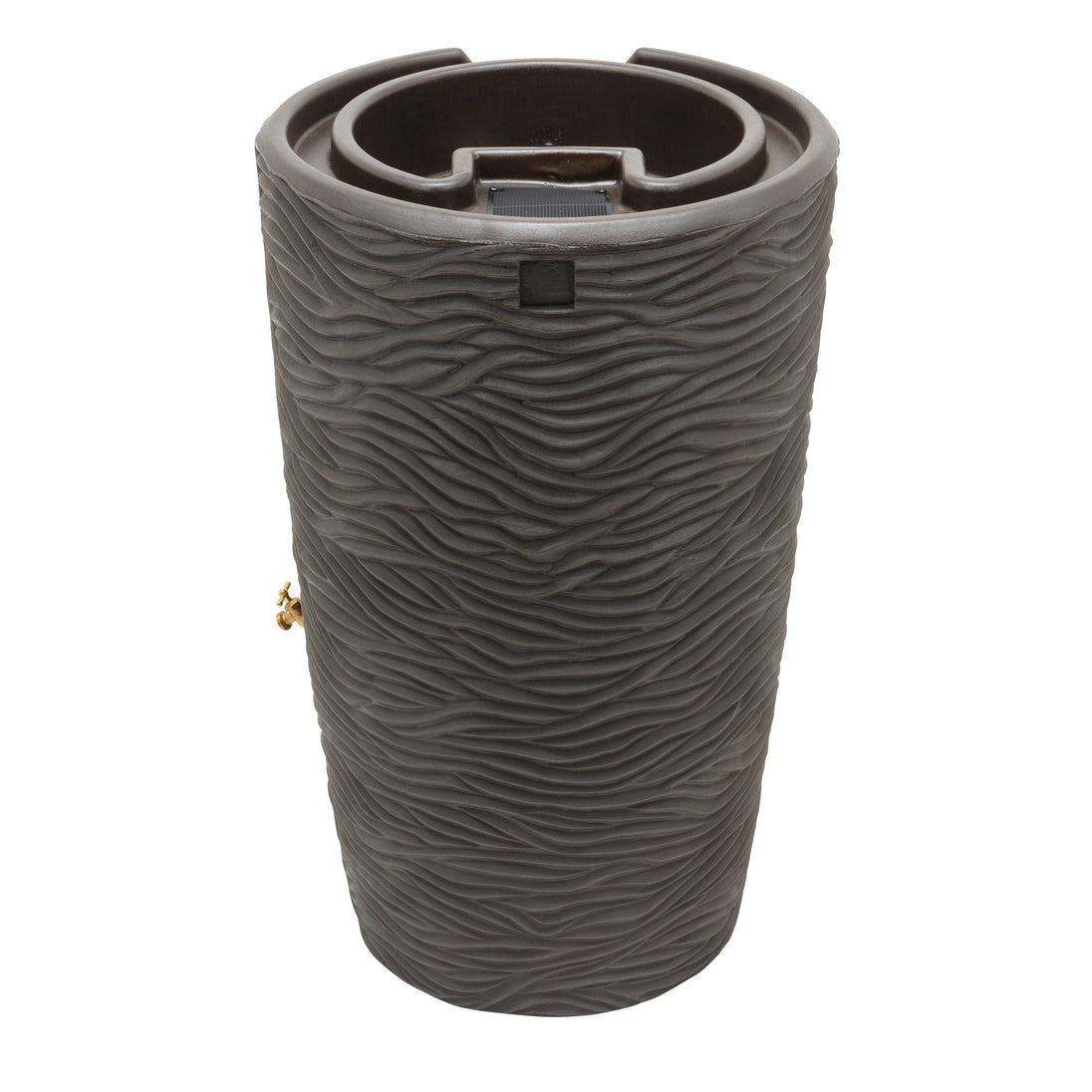The Impressions Palm 65 Gallon Rain Saver is one of the sturdiest and most eye-catching rain barrels on the market. Its appearance emulates the rough texture of a palm tree trunk, and with a deep welled top, you can plant an array of flowers or even a small herb or vegetable garden. The top also includes the Good Ideas original, integrated channel that automatically diverts overflow to the front of the barrel and keeps your foundation from flooding. The large opening can be used for 2x3 or 3x4 downspouts and is covered with a soft, fine mesh, plastic screen that keeps out heavy debris. Also included with the barrel are two sturdy brass spigots to install in the offset spigot locations.