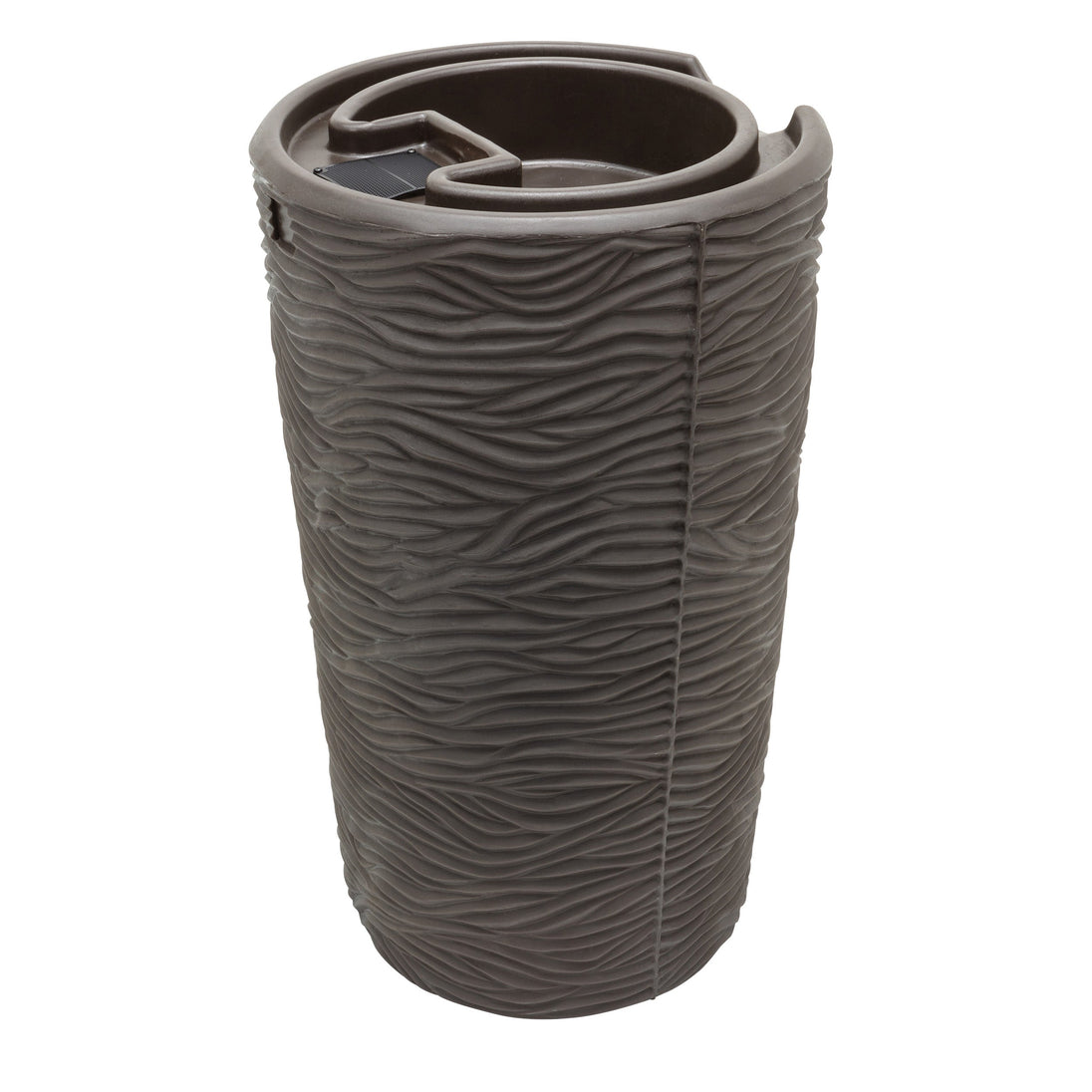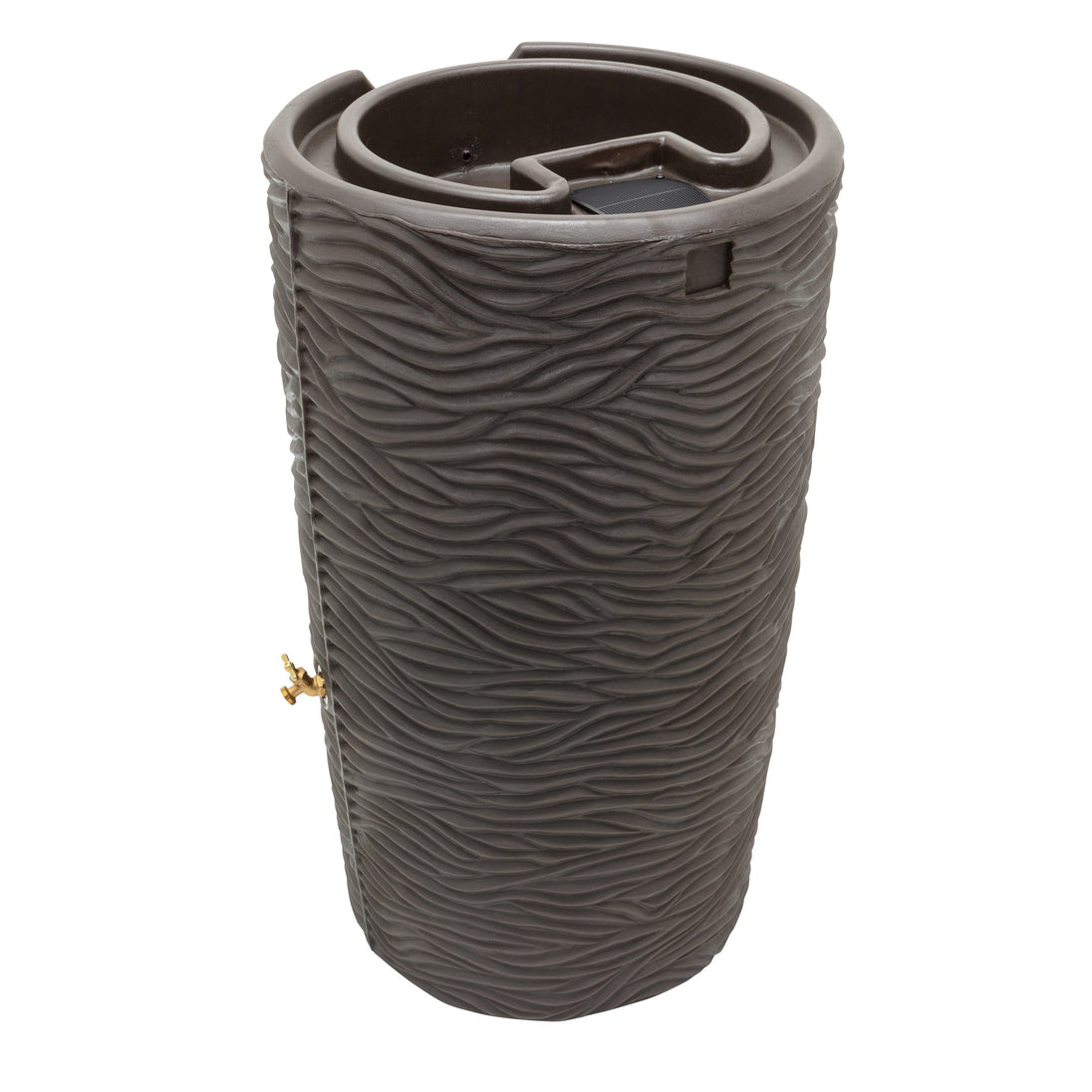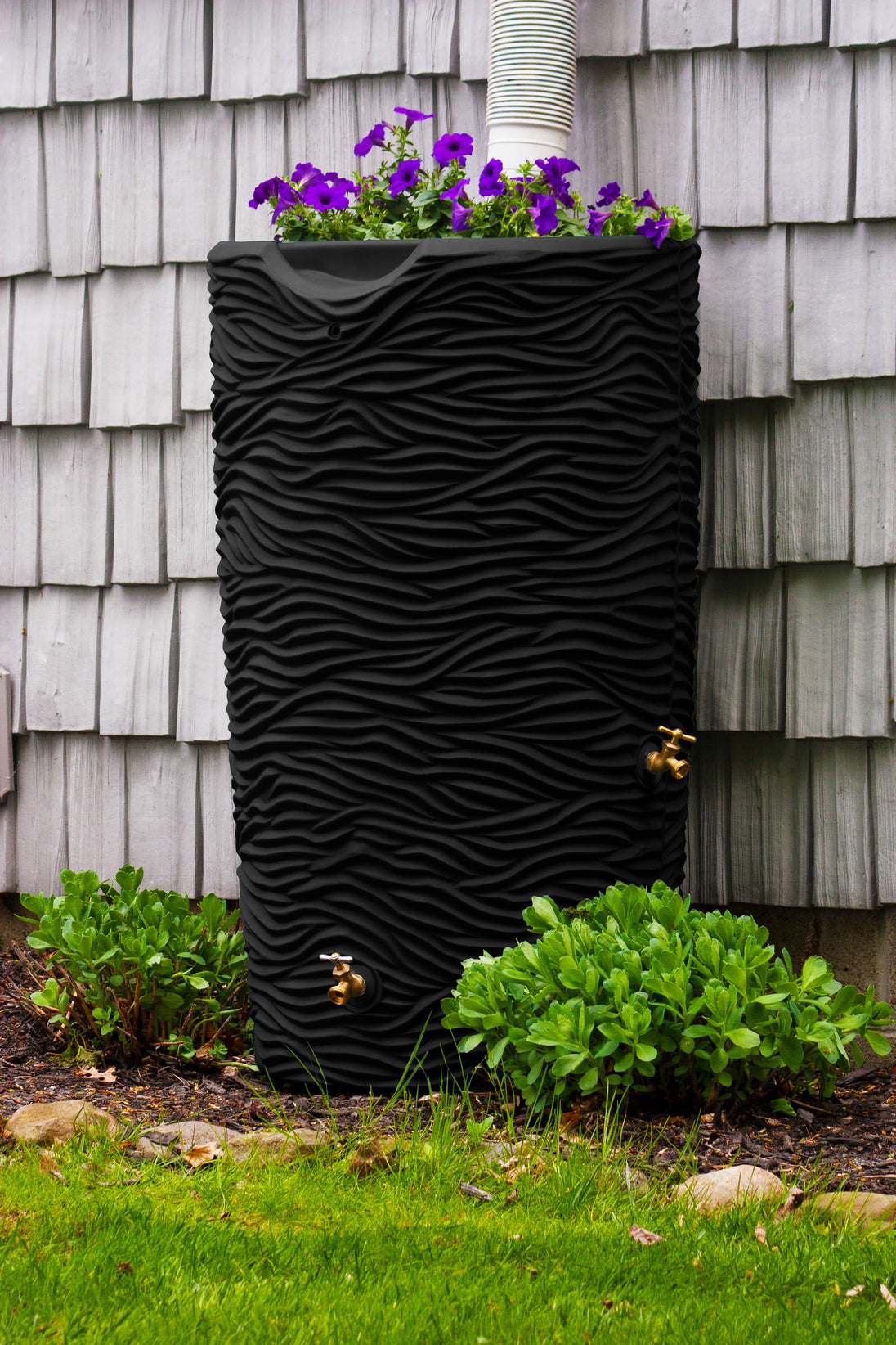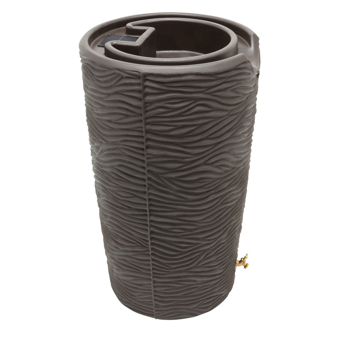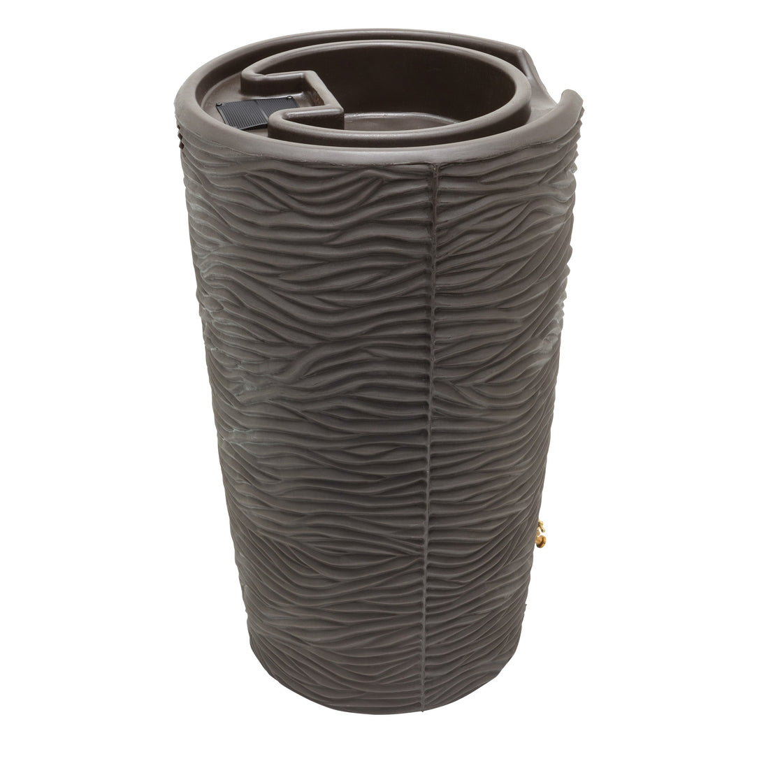 The Impressions Palm 65 Gallon Rain Saver is one of the sturdiest and most eye-catching rain barrels on the market. Its appearance emulates the rough texture of a palm tree trunk, and with a deep welled top, you can plant an array of flowers or even a small herb or vegetable garden. The top also includes the Good Ideas original, integrated channel that automatically diverts overflow to the front of the barrel and keeps your foundation from flooding. The large opening can be used for 2x3 or 3x4 downspouts and is covered with a soft, fine mesh, plastic screen that keeps out heavy debris. Also included with the barrel are two sturdy brass spigots to install in the offset spigot locations.