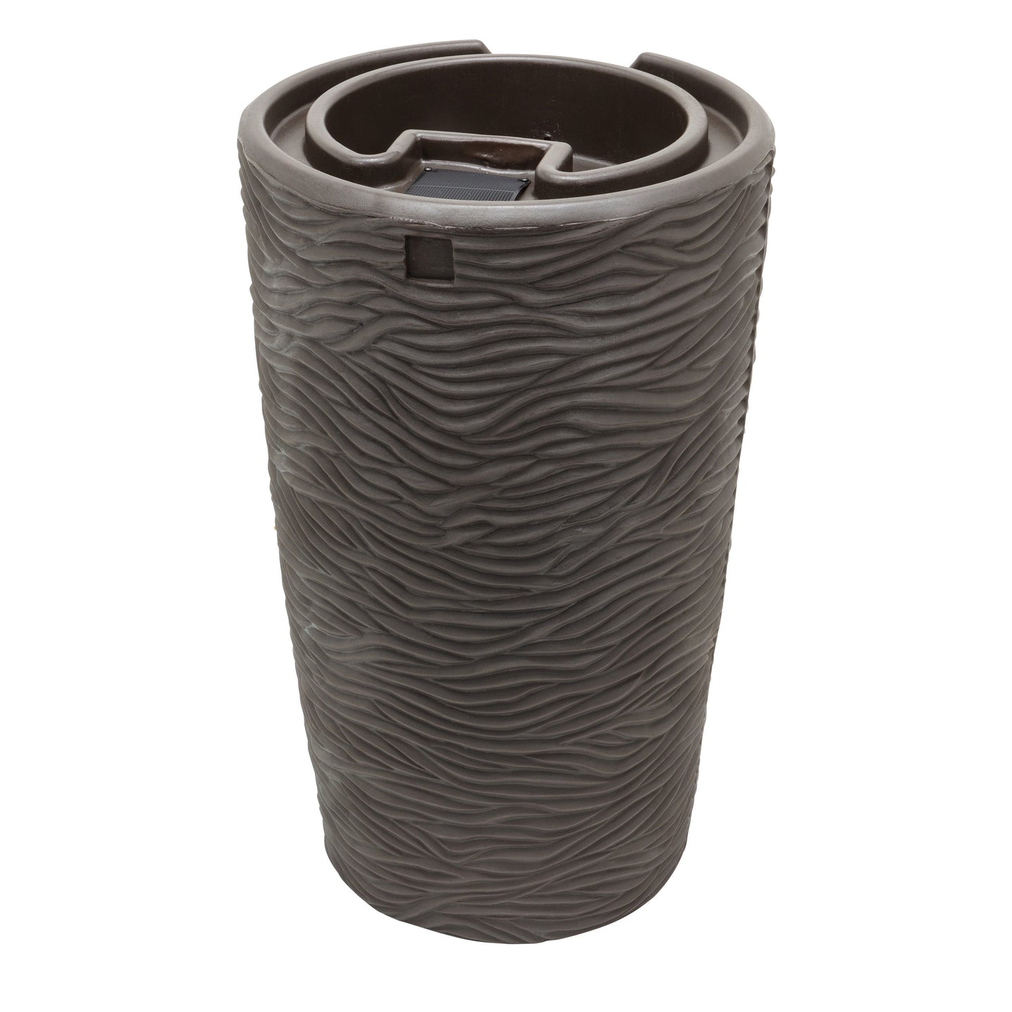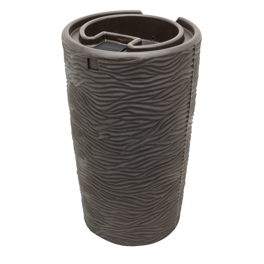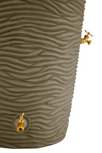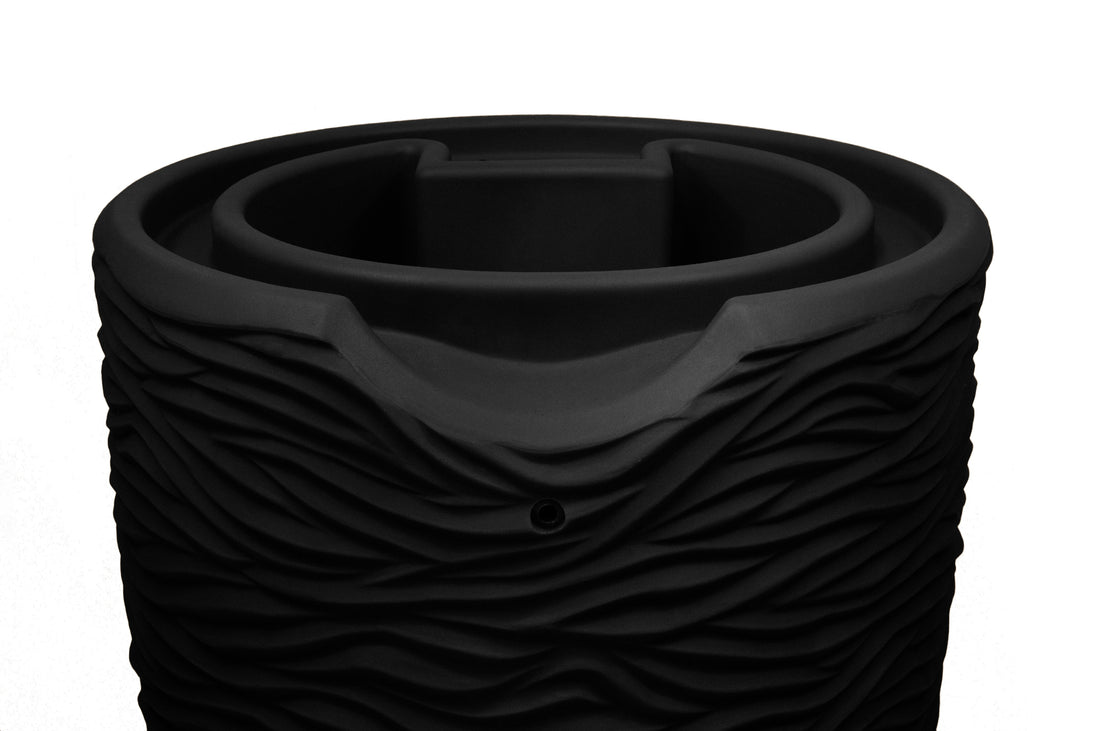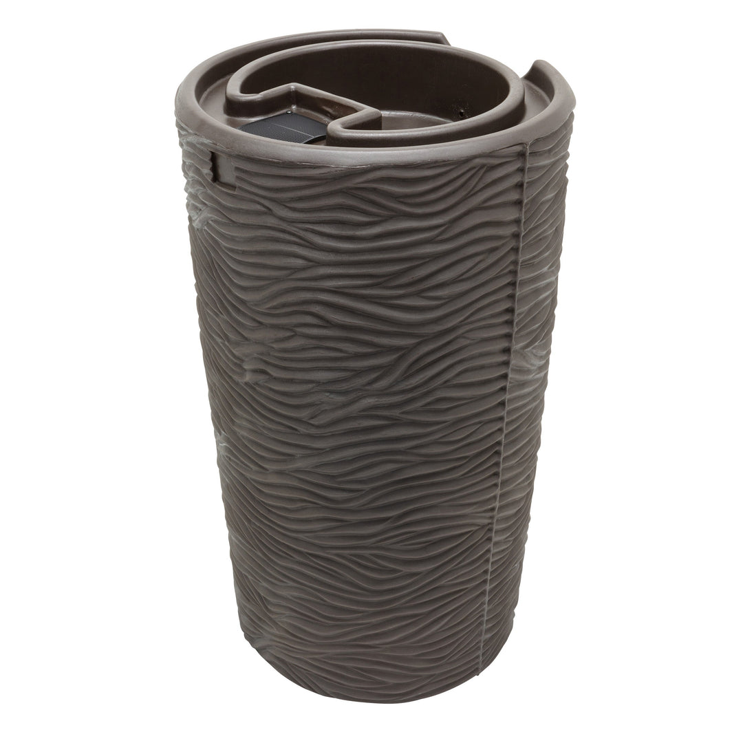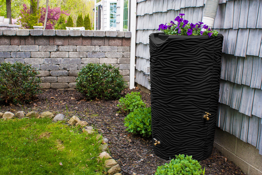 The Impressions Palm 65 Gallon Rain Saver is one of the sturdiest and most eye-catching rain barrels on the market. Its appearance emulates the rough texture of a palm tree trunk, and with a deep welled top, you can plant an array of flowers or even a small herb or vegetable garden. The top also includes the Good Ideas original, integrated channel that automatically diverts overflow to the front of the barrel and keeps your foundation from flooding. The large opening can be used for 2x3 or 3x4 downspouts and is covered with a soft, fine mesh, plastic screen that keeps out heavy debris. Also included with the barrel are two sturdy brass spigots to install in the offset spigot locations.