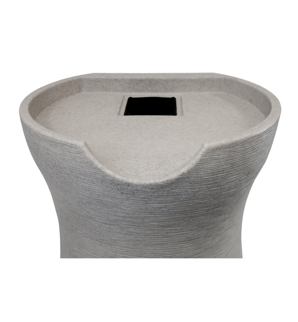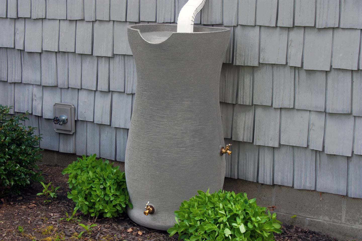 The Impressions Corsican 50 Gallon Rain Saver is one of the sturdiest and most eye-catching rain barrels on the market. The barrel's exterior features a premium linen texture that will look elegant outside virtually any home. The top is graded and shaped to automatically diverts overflow water to the front of the barrel to keep your foundation from flooding. The large downspout opening allows use with both 2x3 or 3x4 downspouts and is covered by a soft, fine mesh, plastic screen to keep out heavy debris. Also included with the barrel are two sturdy brass spigots to install in the offset spigot locations.