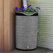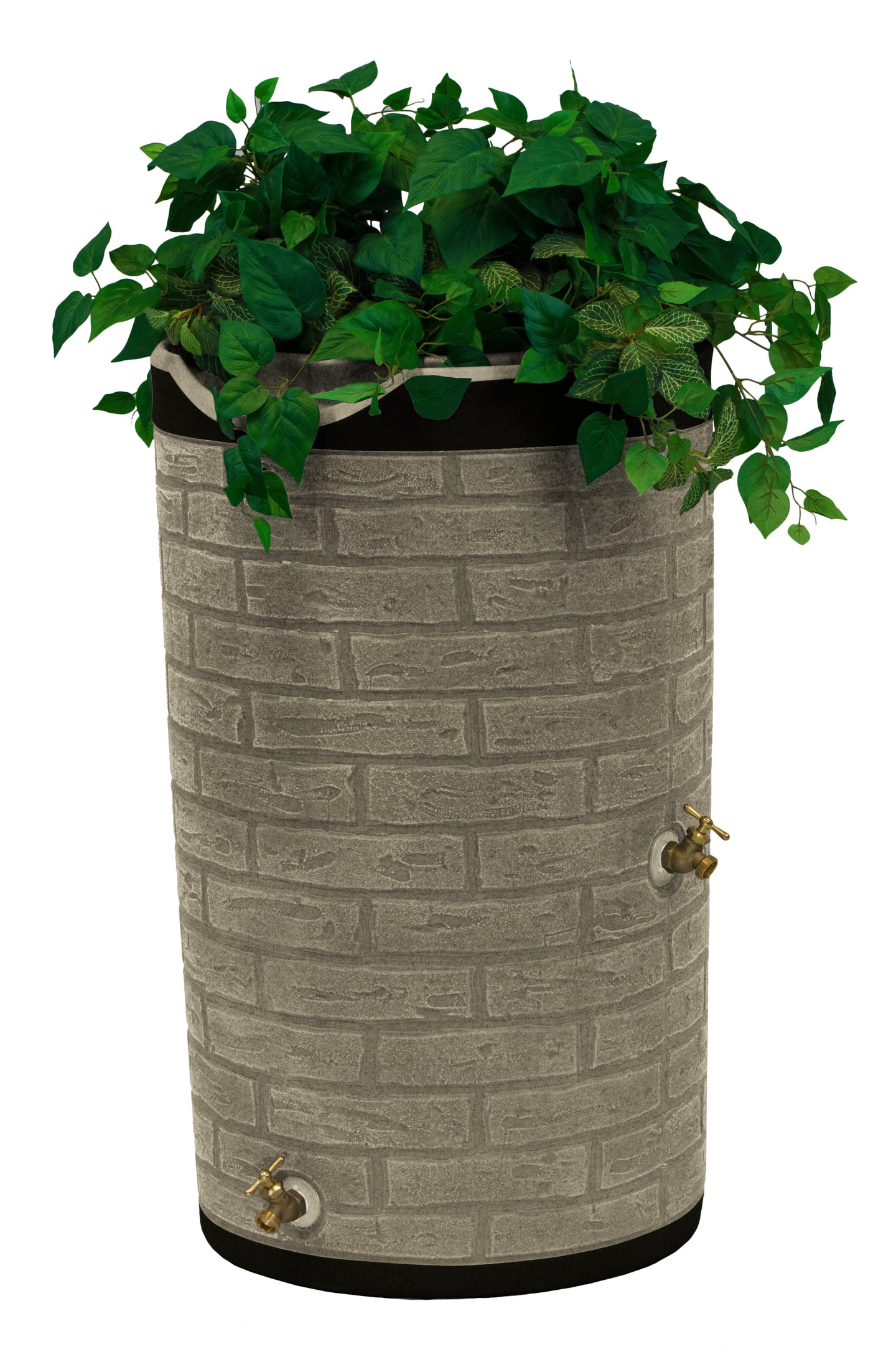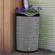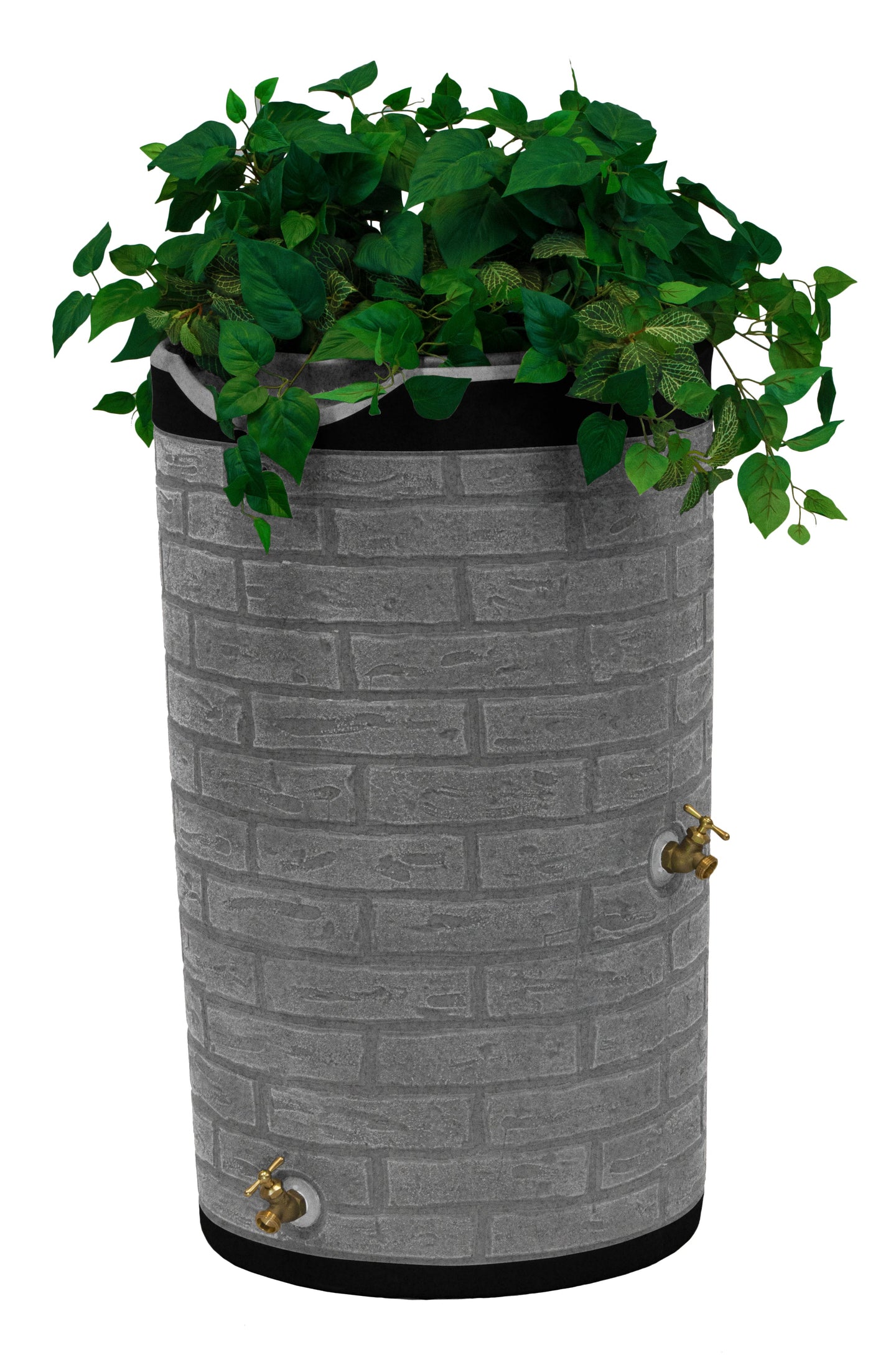 The Impressions Downton 50 Gallon Rain Saver with Darkened Ribs is one of the sturdiest and most eye-catching rain barrels on the market. Its appearance emulates the texture of European cobblestone, and with a deep welled top, you can plant an array of flowers or even a small herb or vegetable garden. The top also includes the Good Ideas original, integrated channel that automatically diverts overflow to the front of the barrel and keeps your foundation from flooding. The large opening can be used for 2x3 or 3x4 downspouts and is covered with a soft, fine mesh, plastic screen that keeps out heavy debris. Also included with the barrel are two sturdy brass spigots to install in the offset spigot locations.