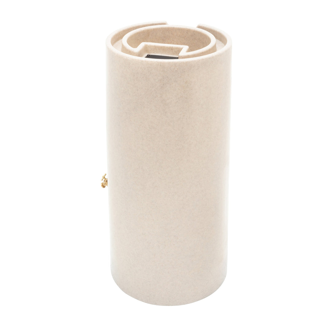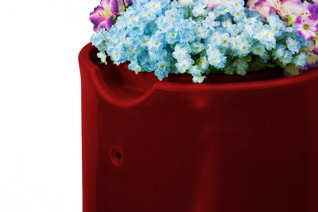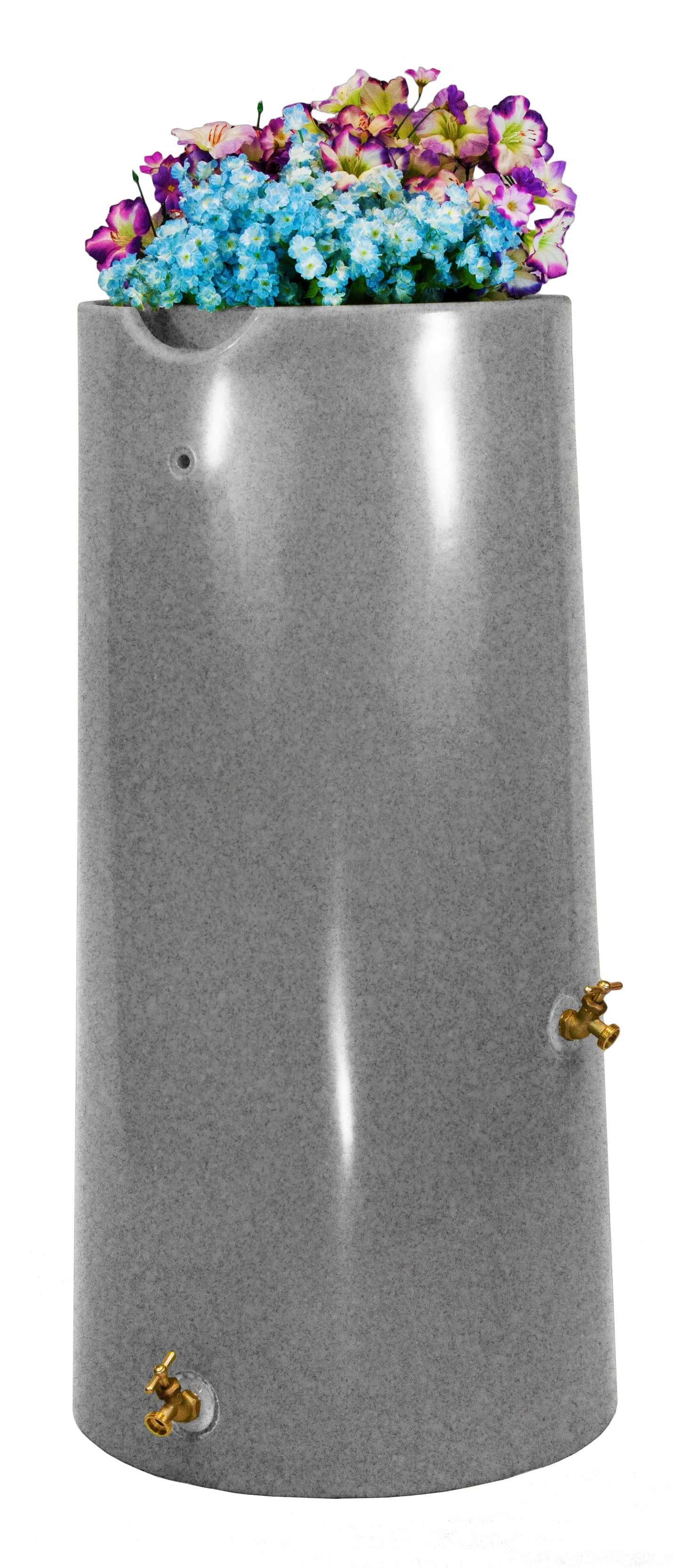 The Impressions Reflections 50 Gallon Rain Saver is one of the sturdiest and most eye-catching rain barrels on the market. The highly reflective surface is unique among current rain barrels and lends itself towards modern design. With a 2-gallon capacity planter top, you can plant an array of flowers or even a small herb or vegetable garden. The top also includes the Good Ideas original, integrated channel that automatically diverts overflow to the front of the barrel and keeps your foundation from flooding. The large opening can be used for 2x3 or 3x4 downspouts and is covered with a soft, fine mesh, plastic screen that keeps out heavy debris. Also included with the barrel are two sturdy brass spigots to install in the offset spigot locations.