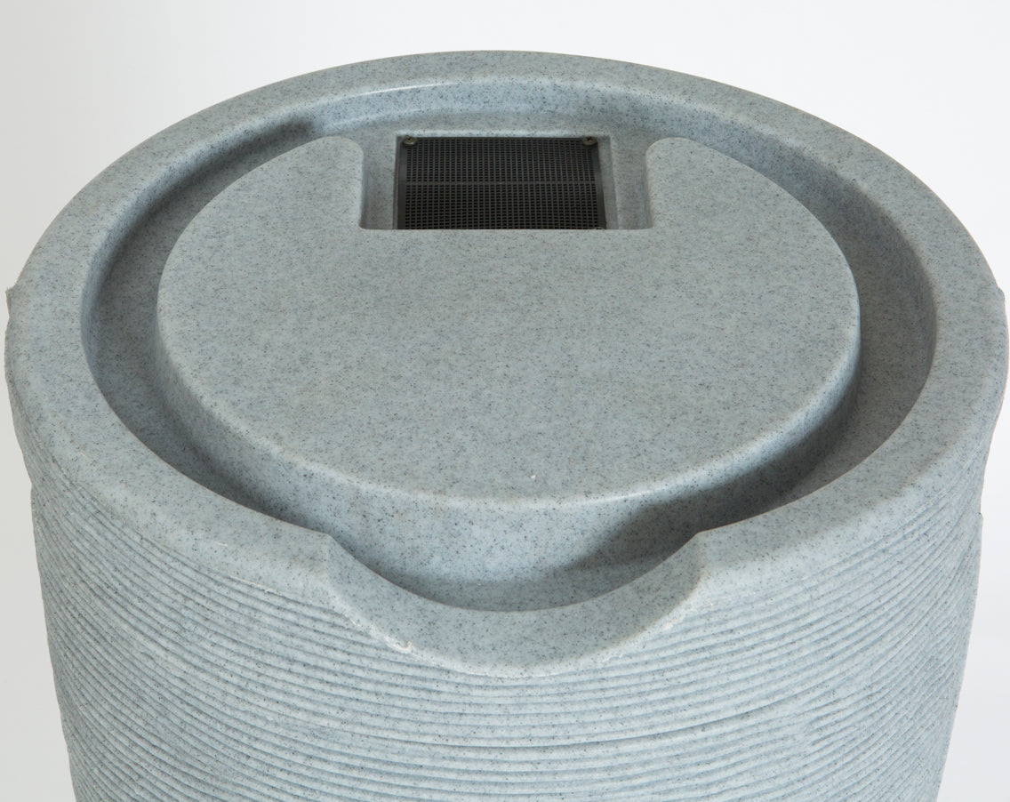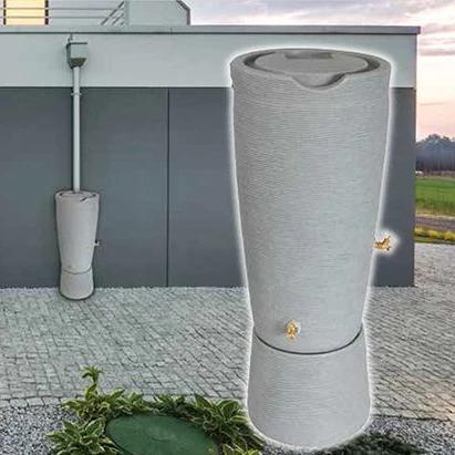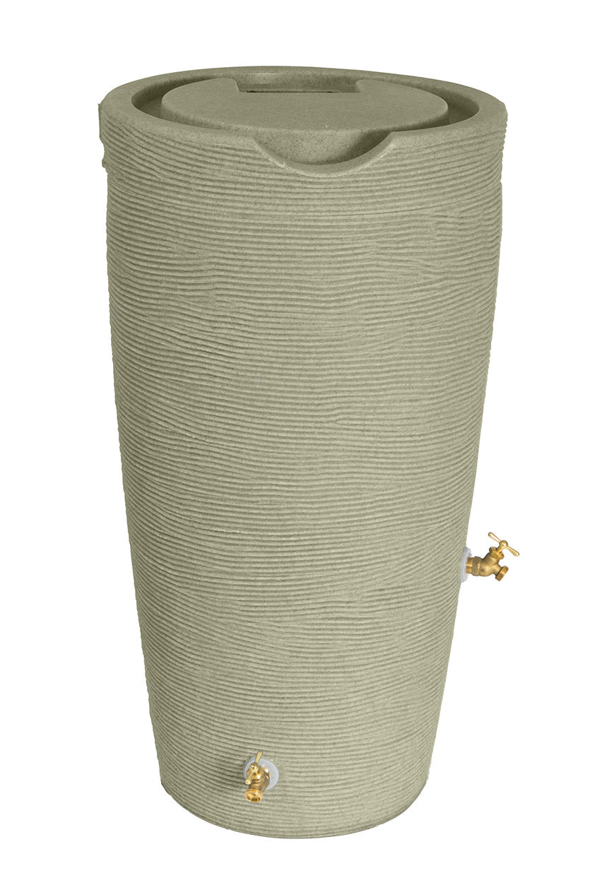 - Artisan, clay stria, stone finish adds class and style to your rain harvesting