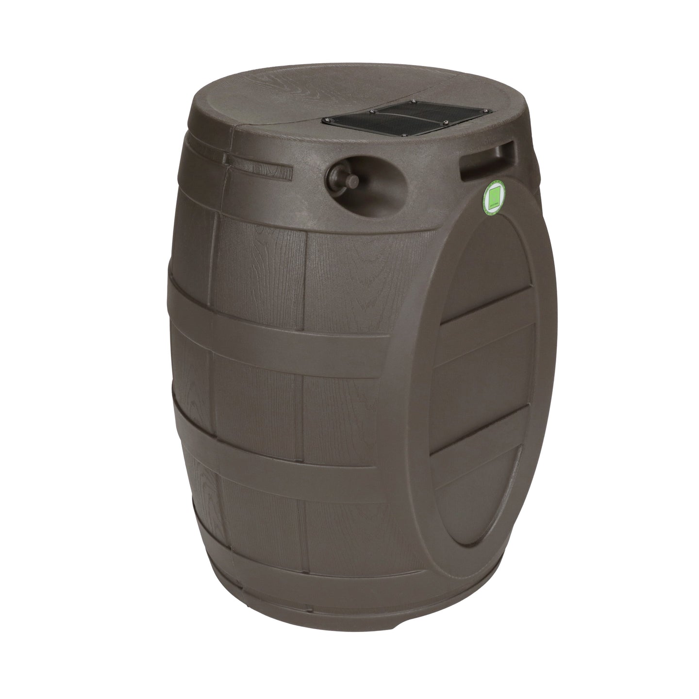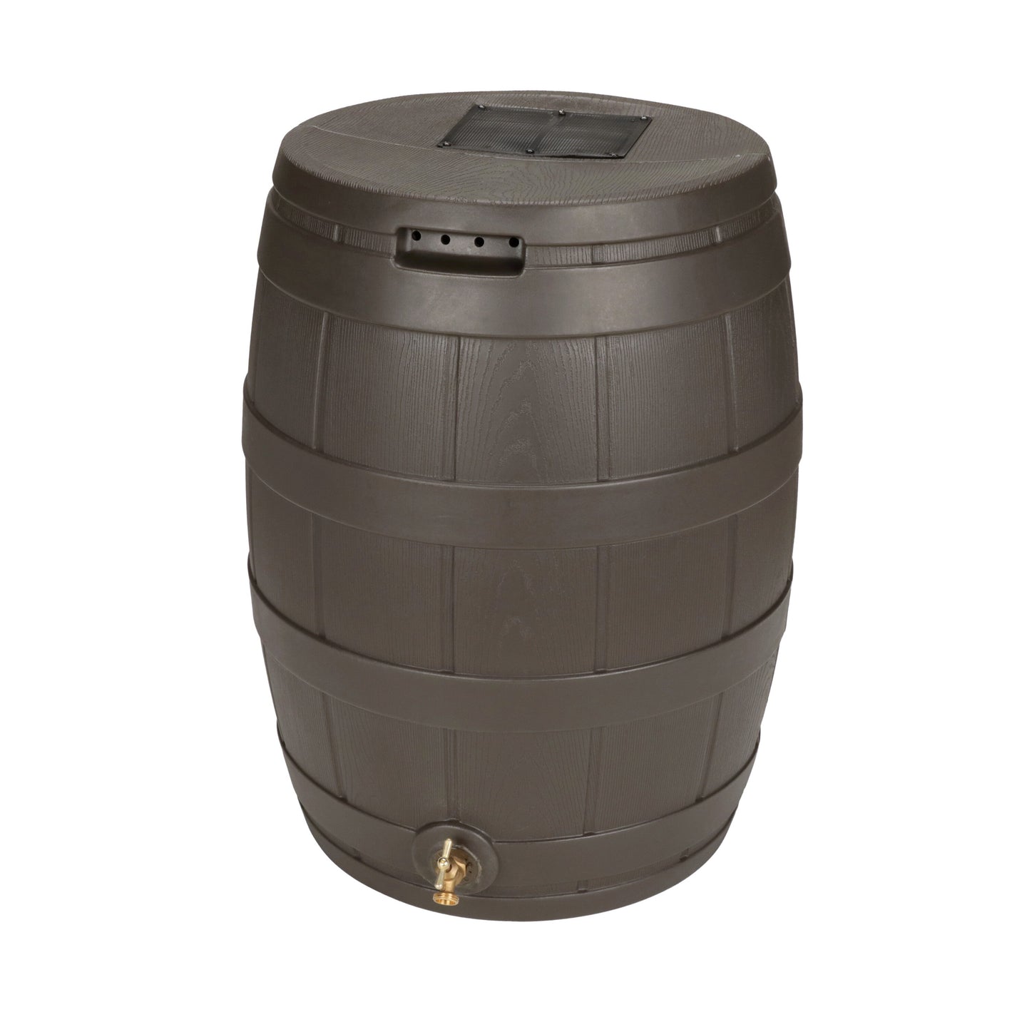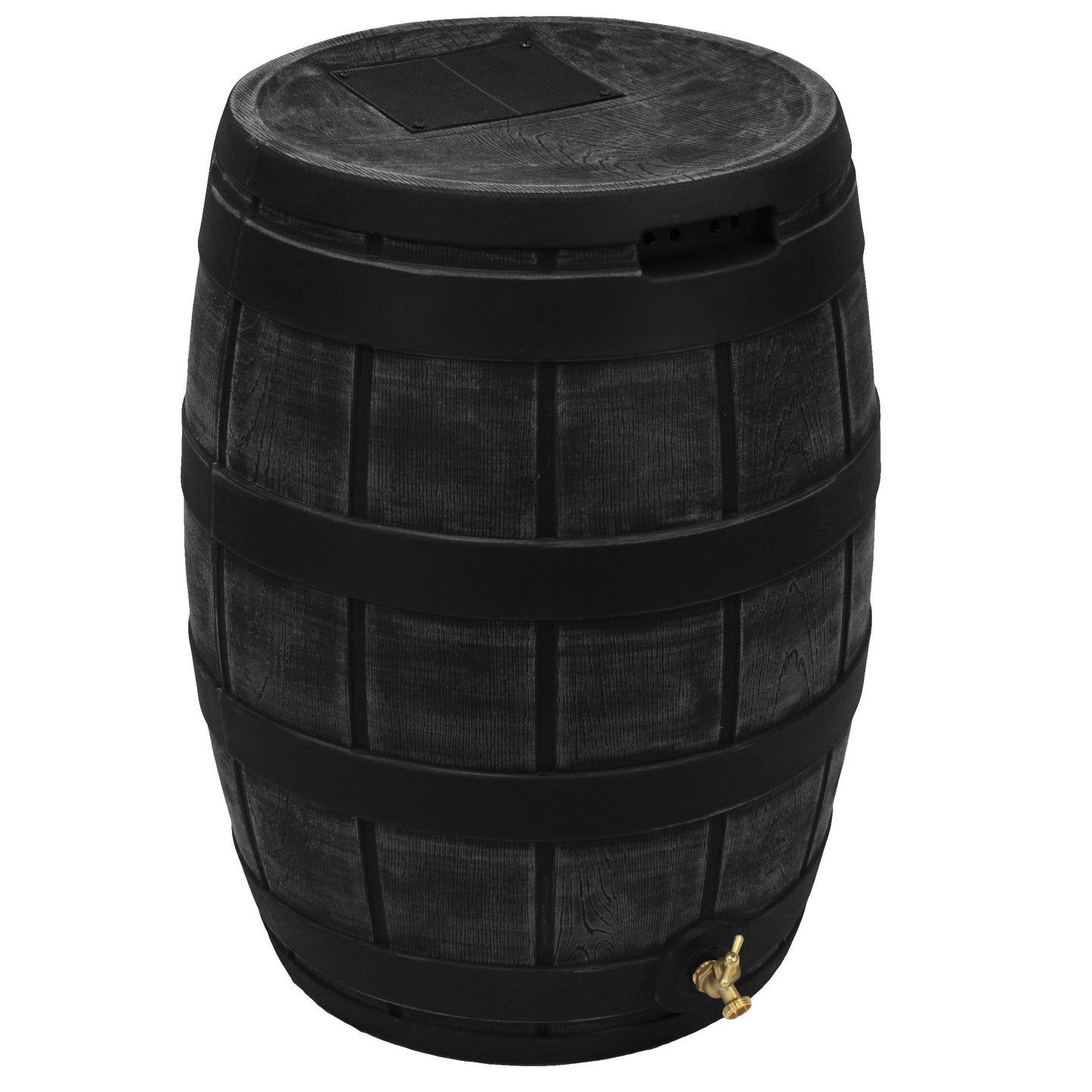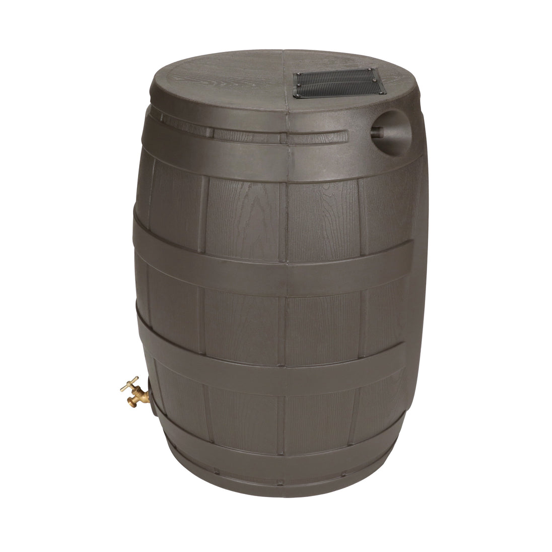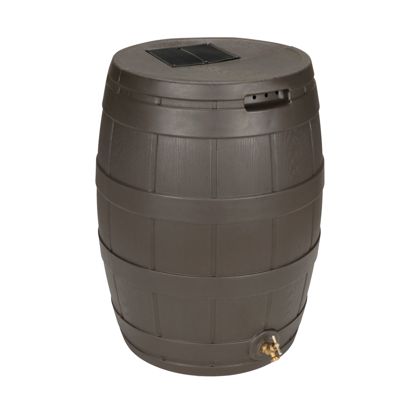 The Rain Vault 50-gallon rain barrel is a classic looking barrel. Modeled after an actual whiskey barrel, this unique rain catcher will provide you with plenty of fresh water while looking great against your home. The top features an anti-debris screen to keep out leaves, and the bottom hosts a high-quality brass spigot for a standard hose connection. The back is flat to sit flush against exterior walls so you don't lose space, and there are connection points which can be used to link barrels together, using the overflow to fill the next barrel. The barrel also has two, deep set handles which are very convenient when moving the Rain Vault.