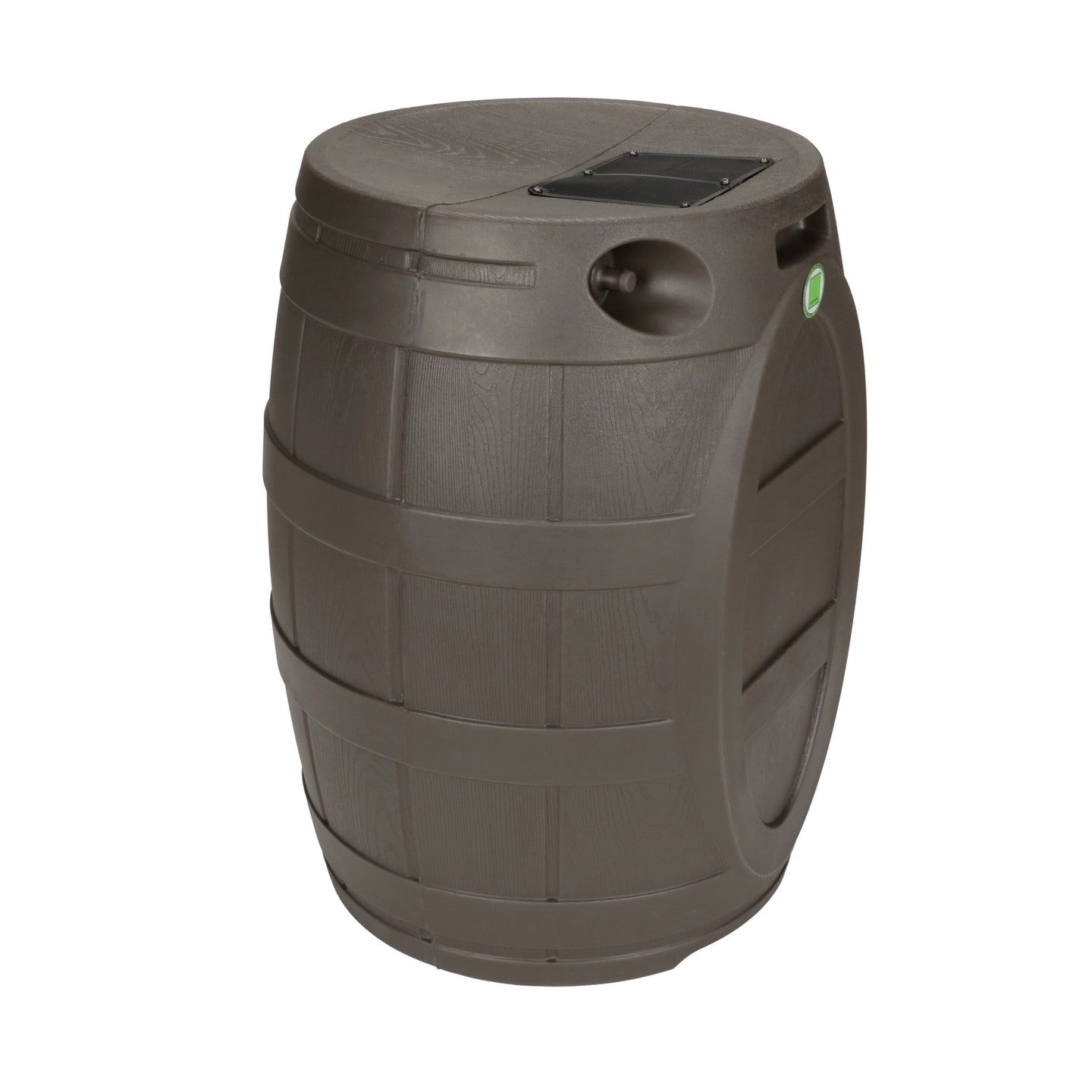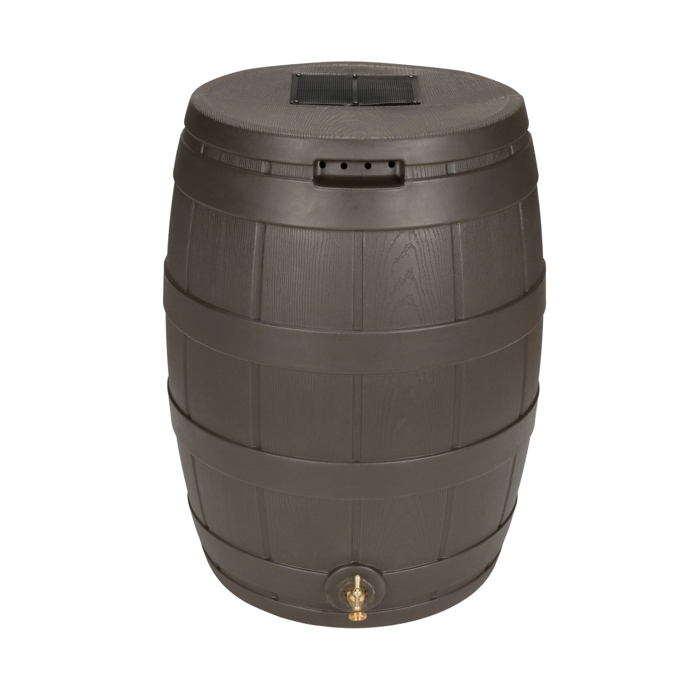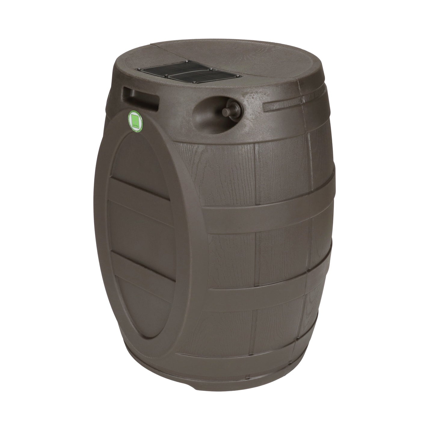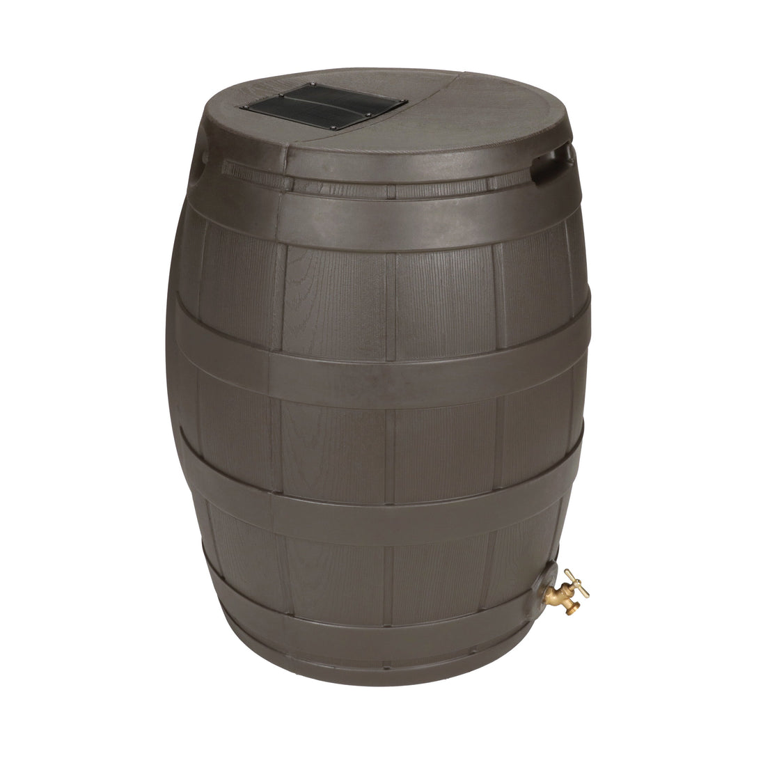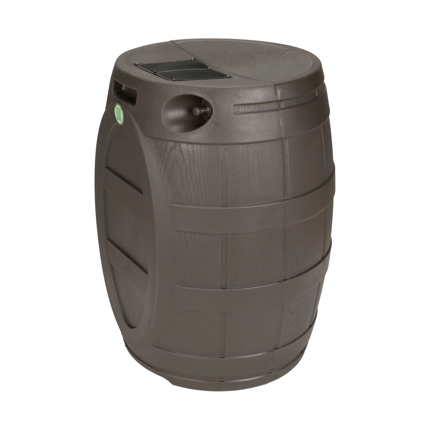 The Rain Vault 50-gallon rain barrel is a classic looking barrel. Modeled after an actual whiskey barrel, this unique rain catcher will provide you with plenty of fresh water while looking great against your home. The top features an anti-debris screen to keep out leaves, and the bottom hosts a high-quality brass spigot for a standard hose connection. The back is flat to sit flush against exterior walls so you don't lose space, and there are connection points which can be used to link barrels together, using the overflow to fill the next barrel. The barrel also has two, deep set handles which are very convenient when moving the Rain Vault.