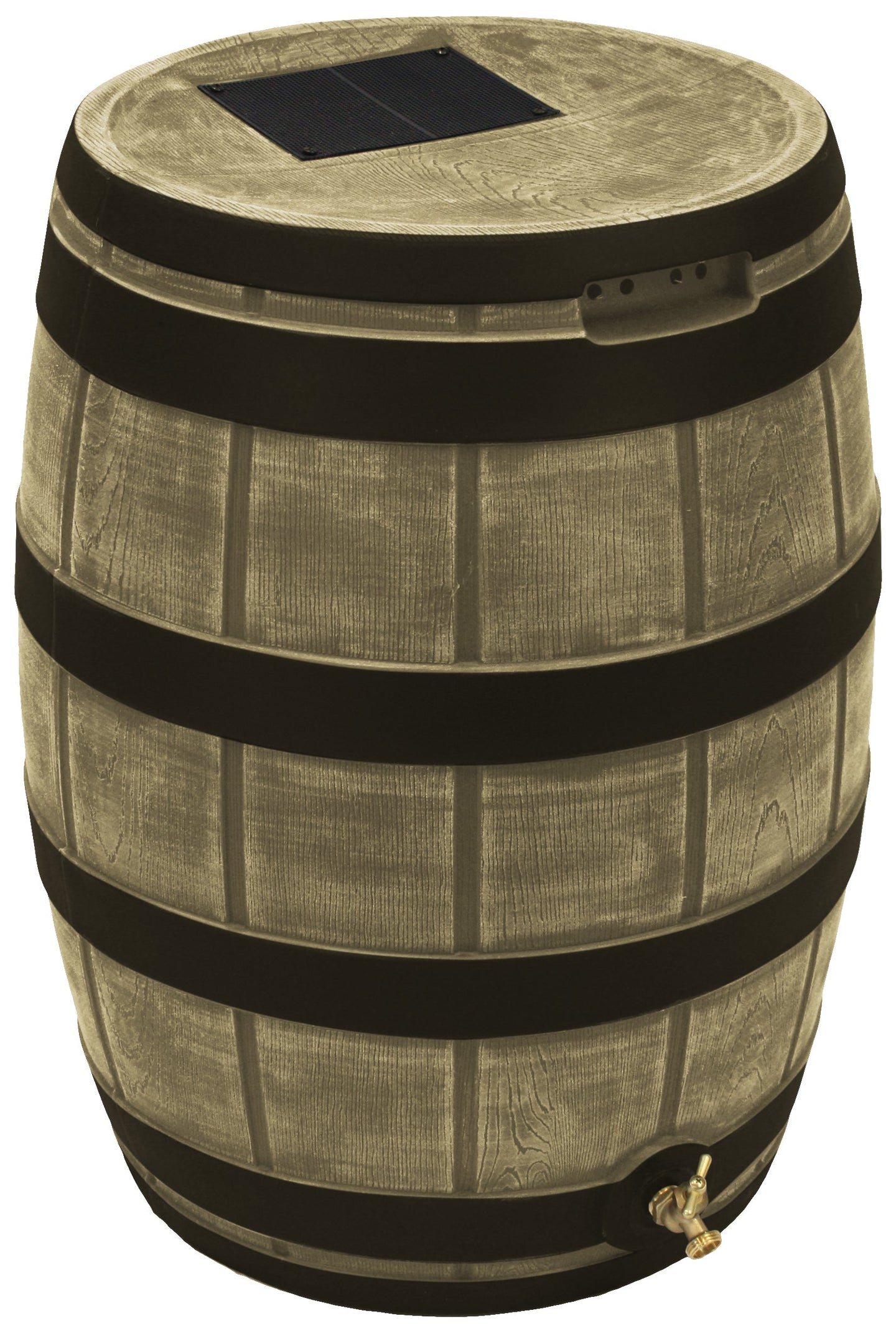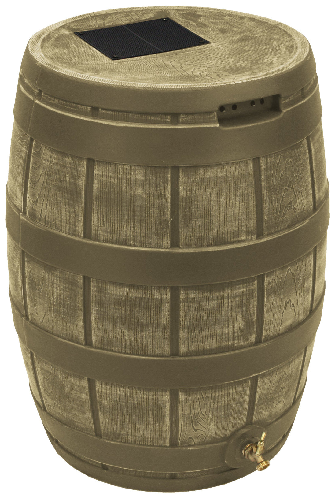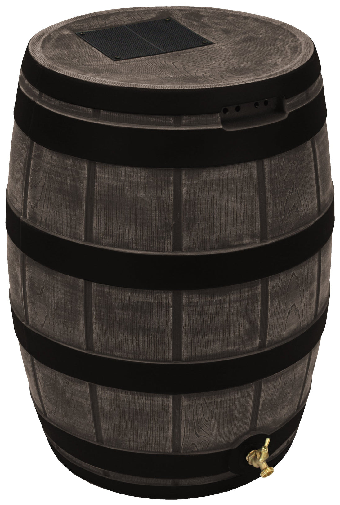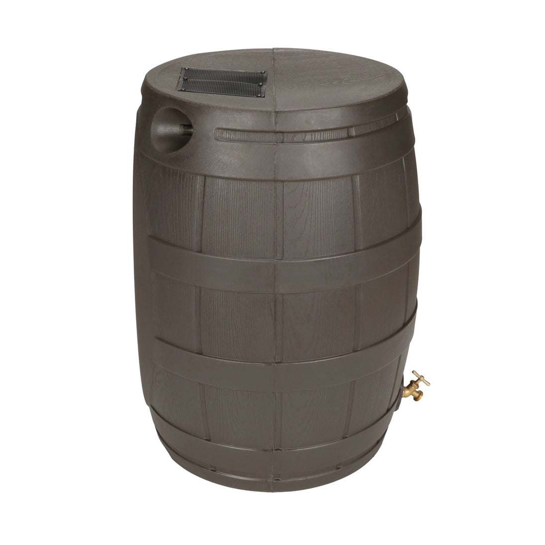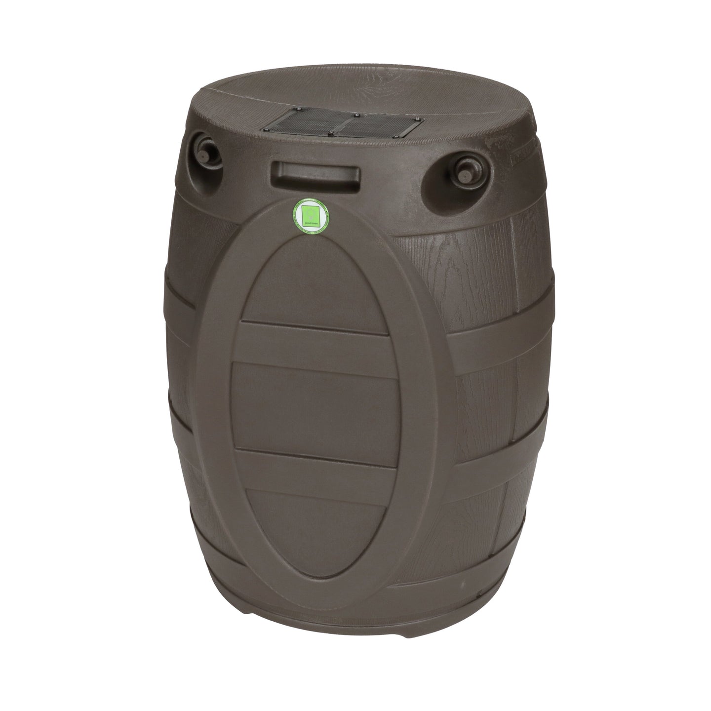 The Rain Vault 50-gallon rain barrel is a classic looking barrel. Modeled after an actual whiskey barrel, this unique rain catcher will provide you with plenty of fresh water while looking great against your home. The top features an anti-debris screen to keep out leaves, and the bottom hosts a high-quality brass spigot for a standard hose connection. The back is flat to sit flush against exterior walls so you don't lose space, and there are connection points which can be used to link barrels together, using the overflow to fill the next barrel. The barrel also has two, deep set handles which are very convenient when moving the Rain Vault.