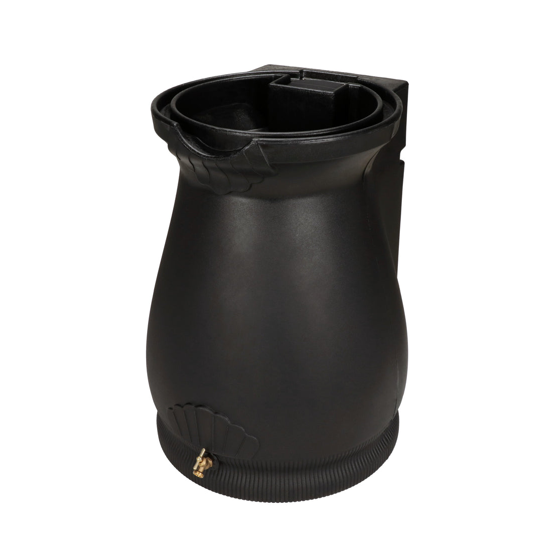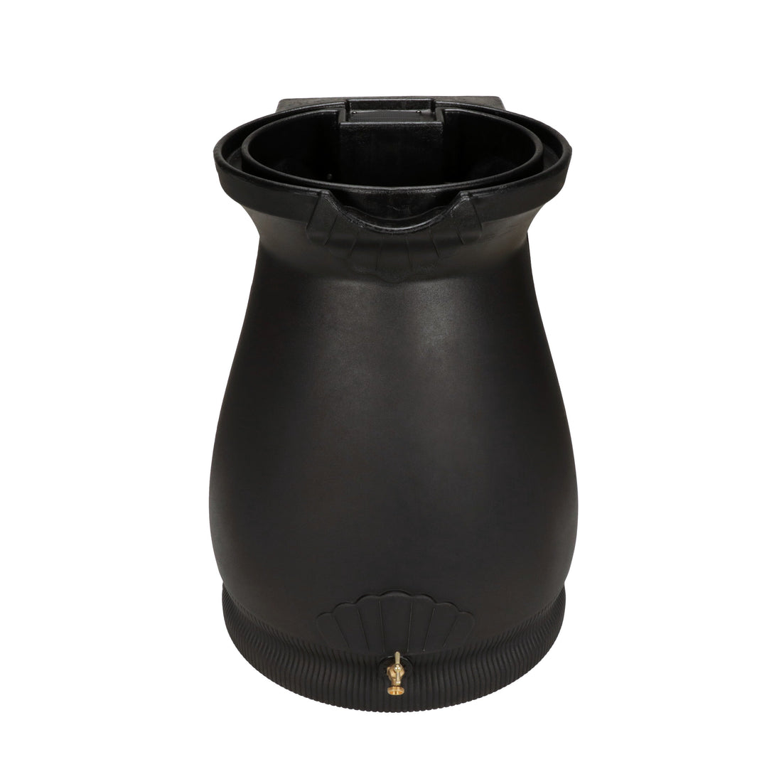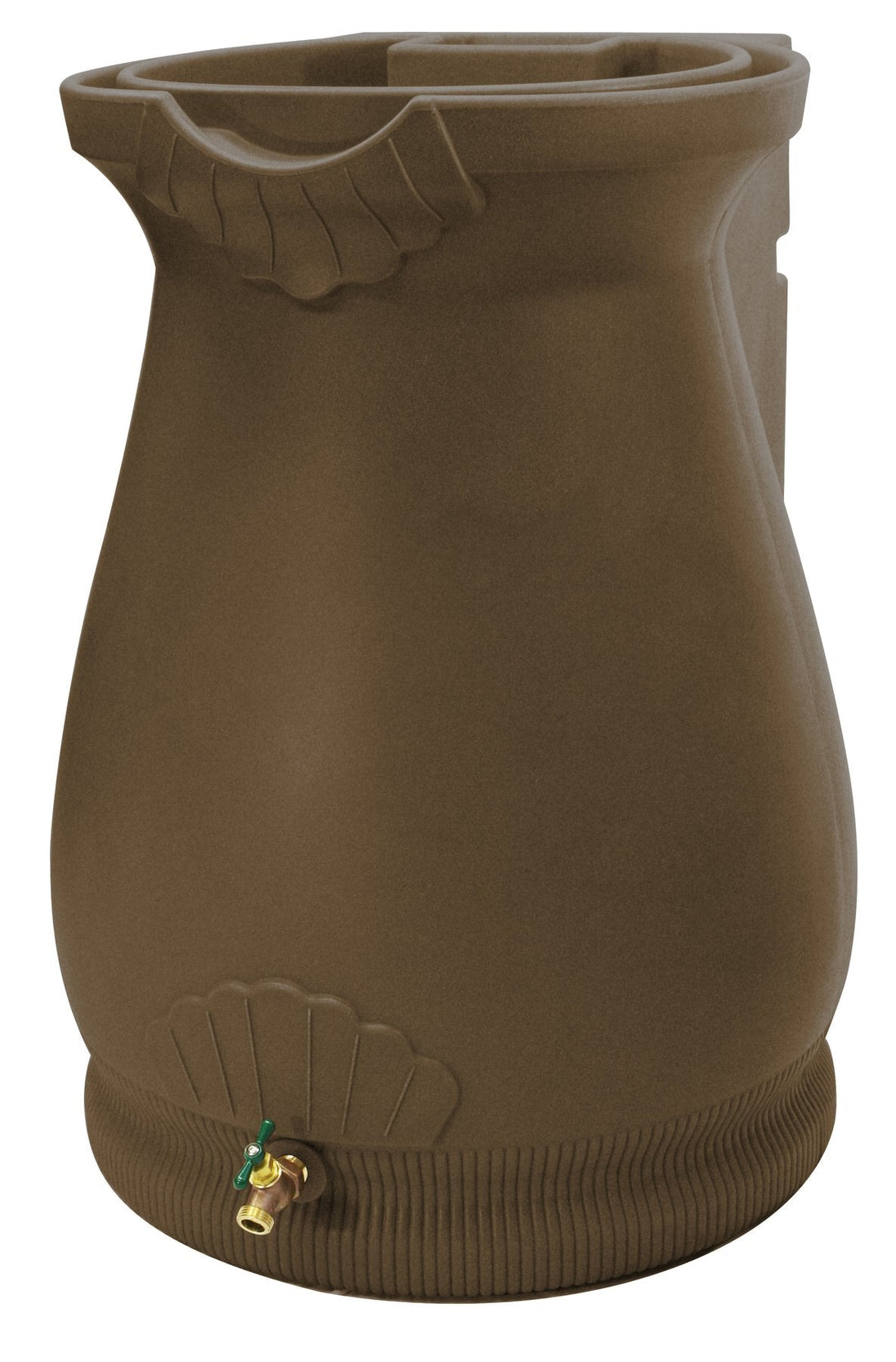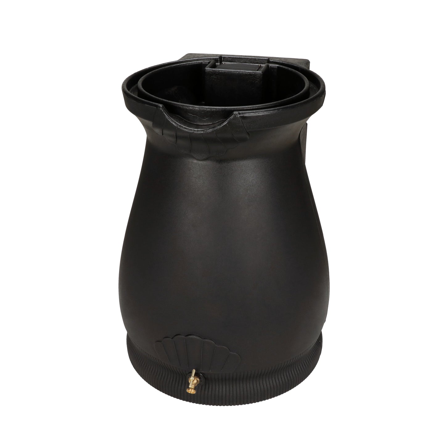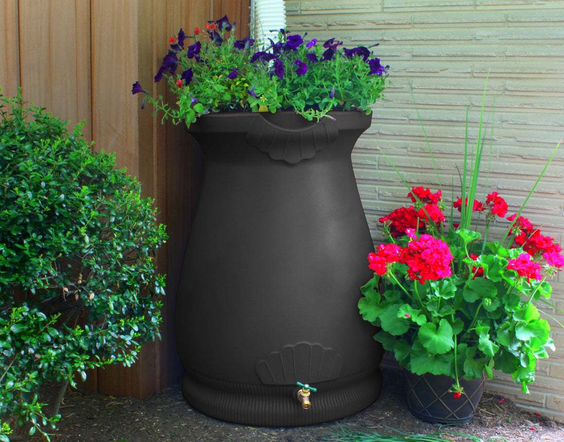 The Rain Wizard Urn 65-gallon rain barrel is both beautiful and cleverly designed. Constructed with thick and durable plastic resin, it will hold up to the harshest elements. With the appearance of a terra cotta urn, the rain barrel's graceful lines, curves, and trim make it a stylish accent piece for your home's exterior. The flat back design allows you to position the barrel close to walls or flat areas. The top is a self-draining planter and includes the Good Ideas original, integrated channel that diverts overflow to the front of the barrel to keep your foundation from flooding. Like all Good Ideas rain barrels, this product is BPA-Free.