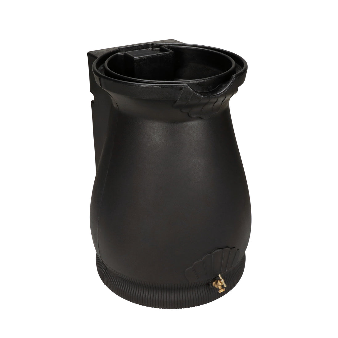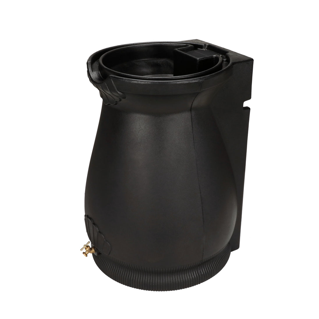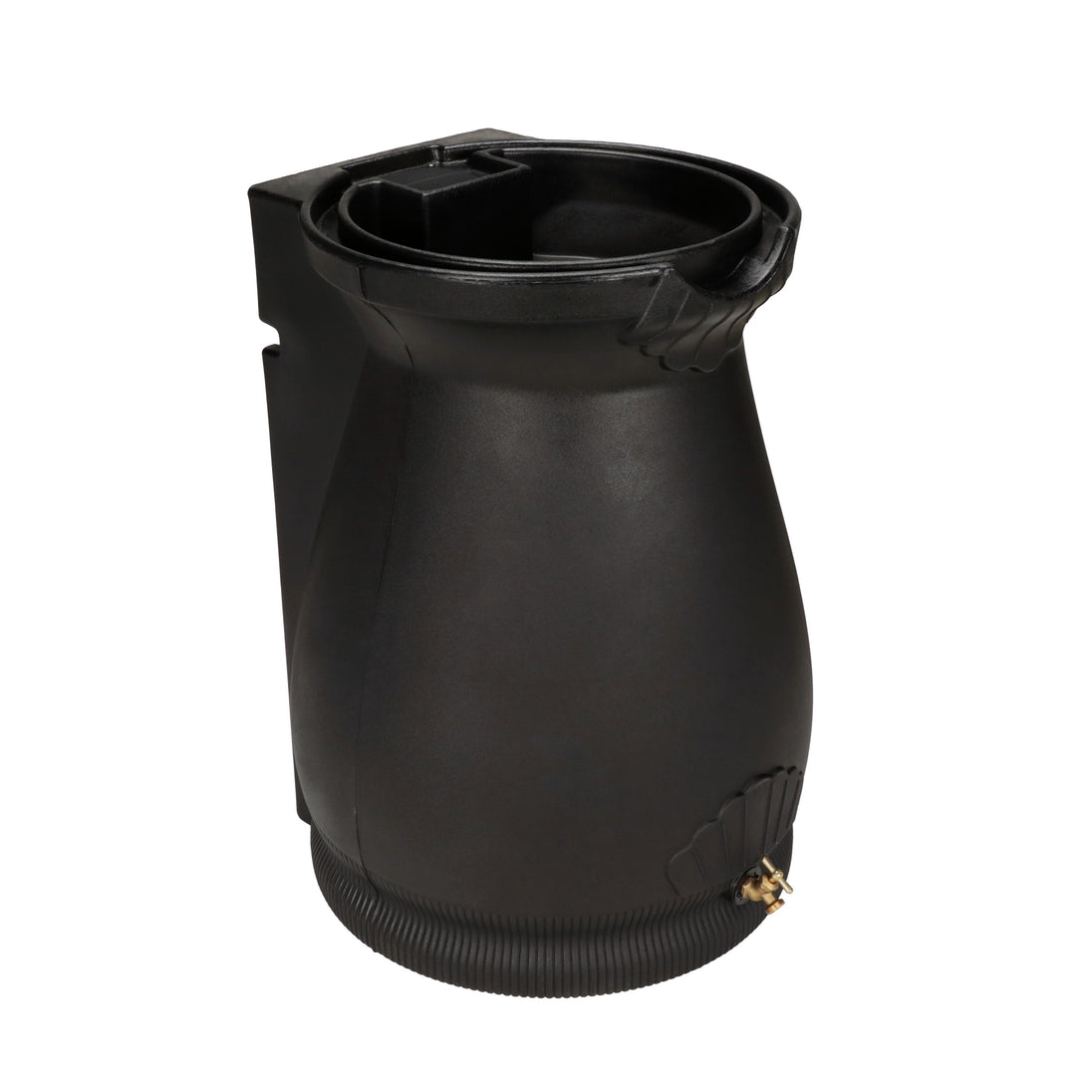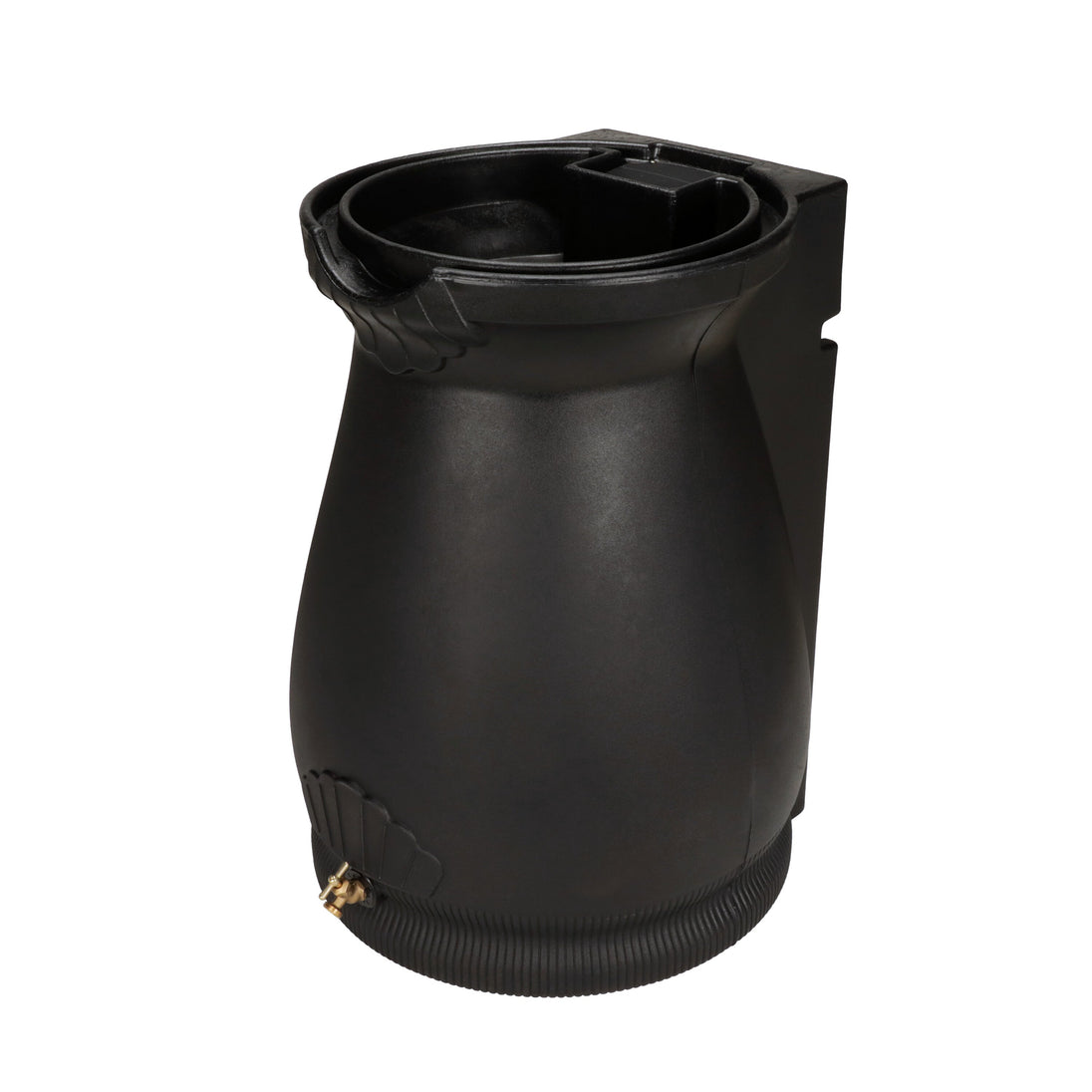 The Rain Wizard Urn 65-gallon rain barrel is both beautiful and cleverly designed. Constructed with thick and durable plastic resin, it will hold up to the harshest elements. With the appearance of a terra cotta urn, the rain barrel's graceful lines, curves, and trim make it a stylish accent piece for your home's exterior. The flat back design allows you to position the barrel close to walls or flat areas. The top is a self-draining planter and includes the Good Ideas original, integrated channel that diverts overflow to the front of the barrel to keep your foundation from flooding. Like all Good Ideas rain barrels, this product is BPA-Free.