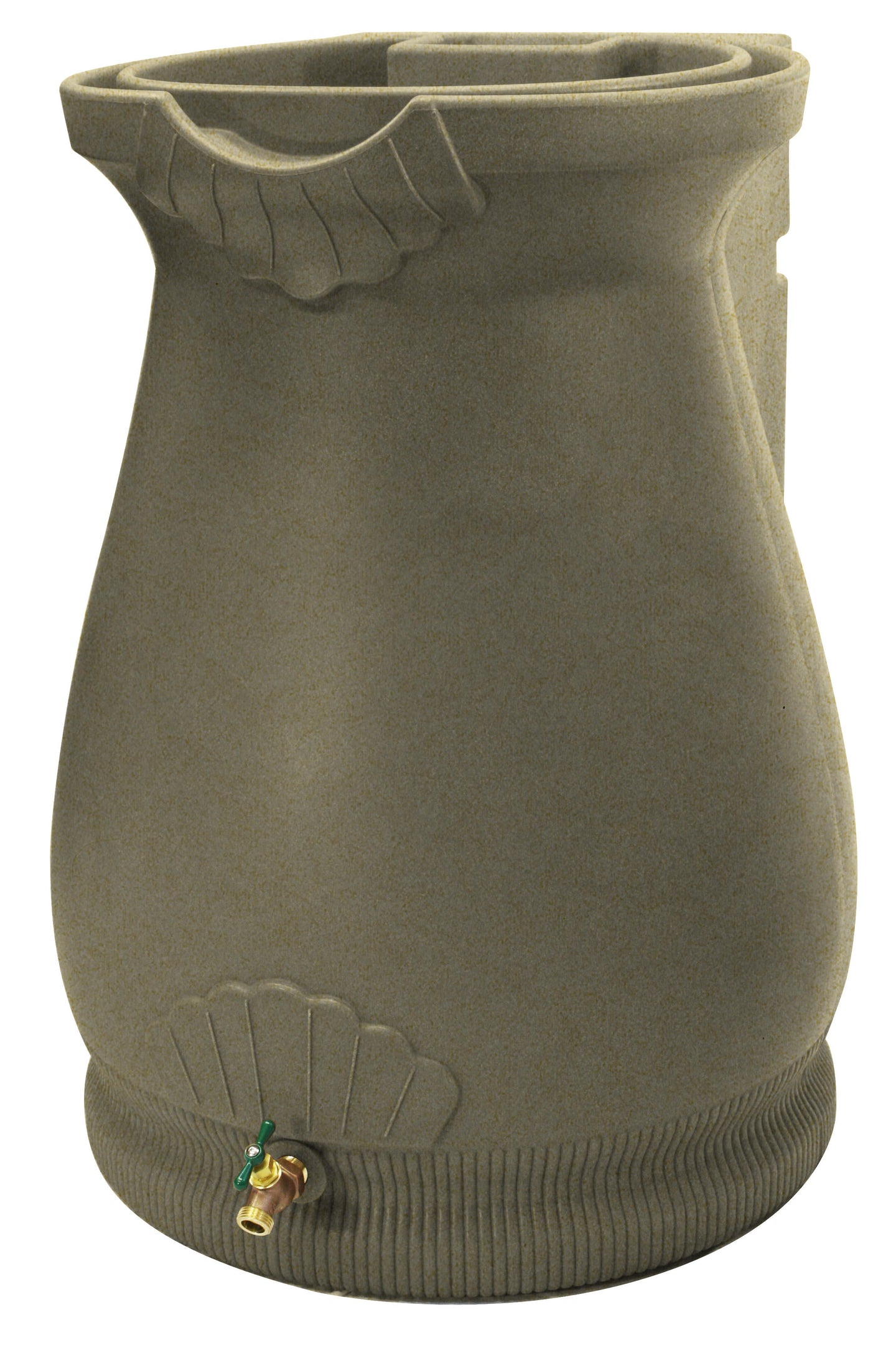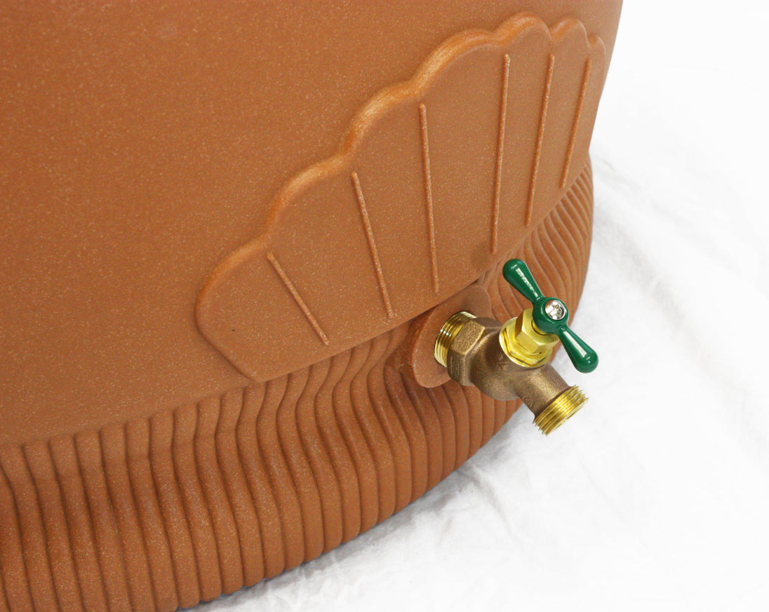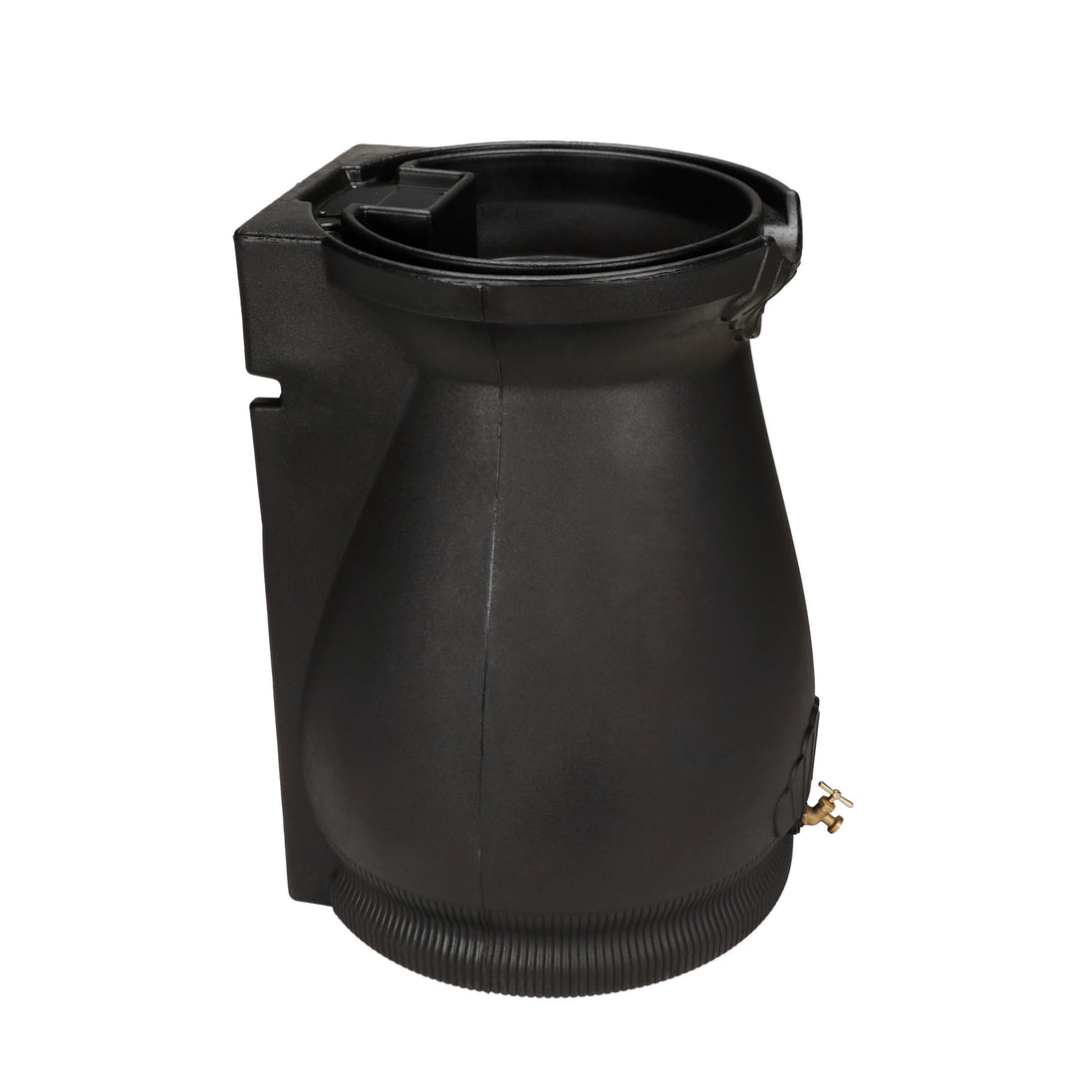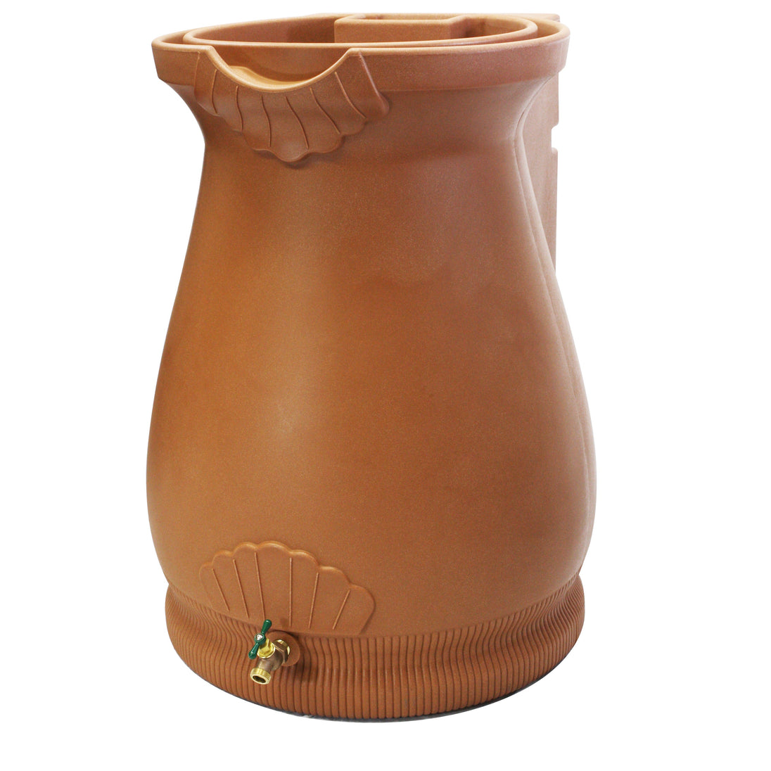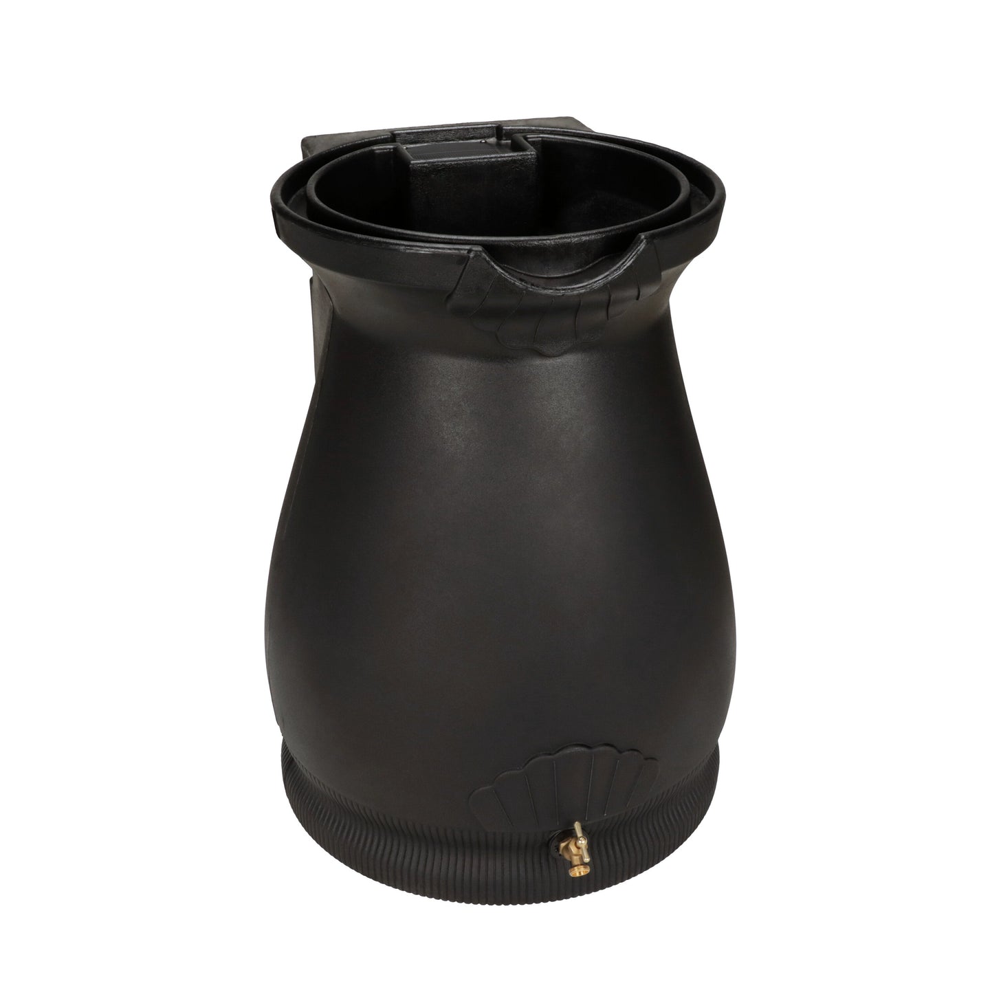 The Rain Wizard Urn 65-gallon rain barrel is both beautiful and cleverly designed. Constructed with thick and durable plastic resin, it will hold up to the harshest elements. With the appearance of a terra cotta urn, the rain barrel's graceful lines, curves, and trim make it a stylish accent piece for your home's exterior. The flat back design allows you to position the barrel close to walls or flat areas. The top is a self-draining planter and includes the Good Ideas original, integrated channel that diverts overflow to the front of the barrel to keep your foundation from flooding. Like all Good Ideas rain barrels, this product is BPA-Free.
