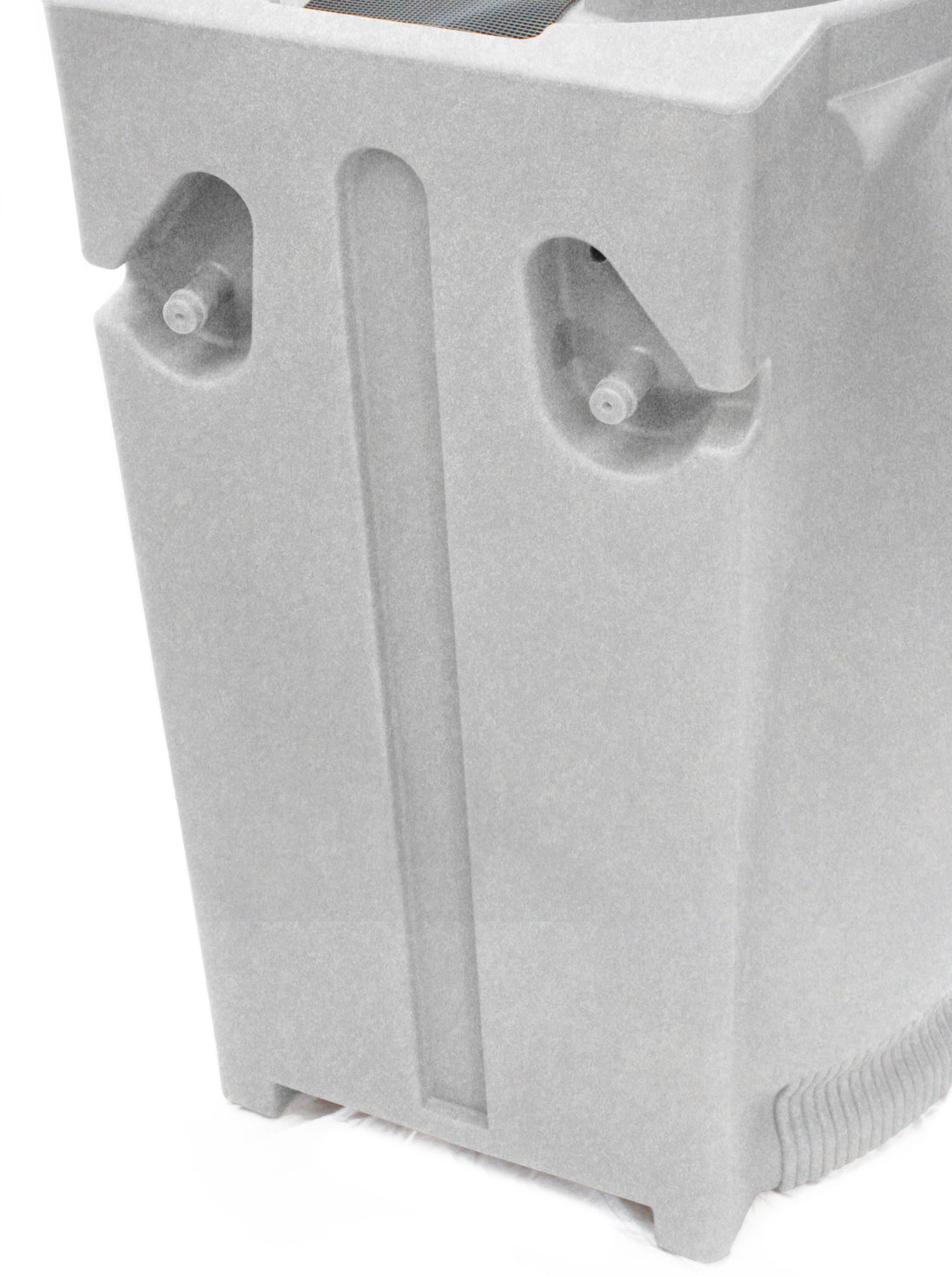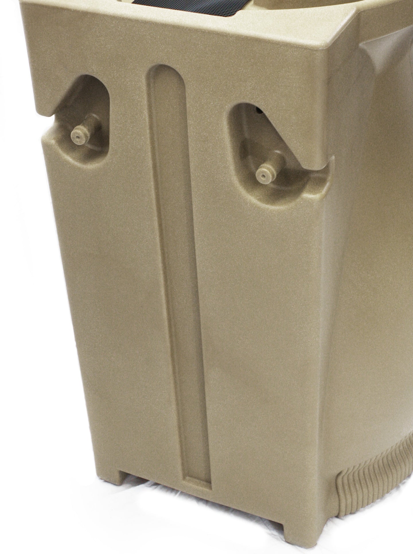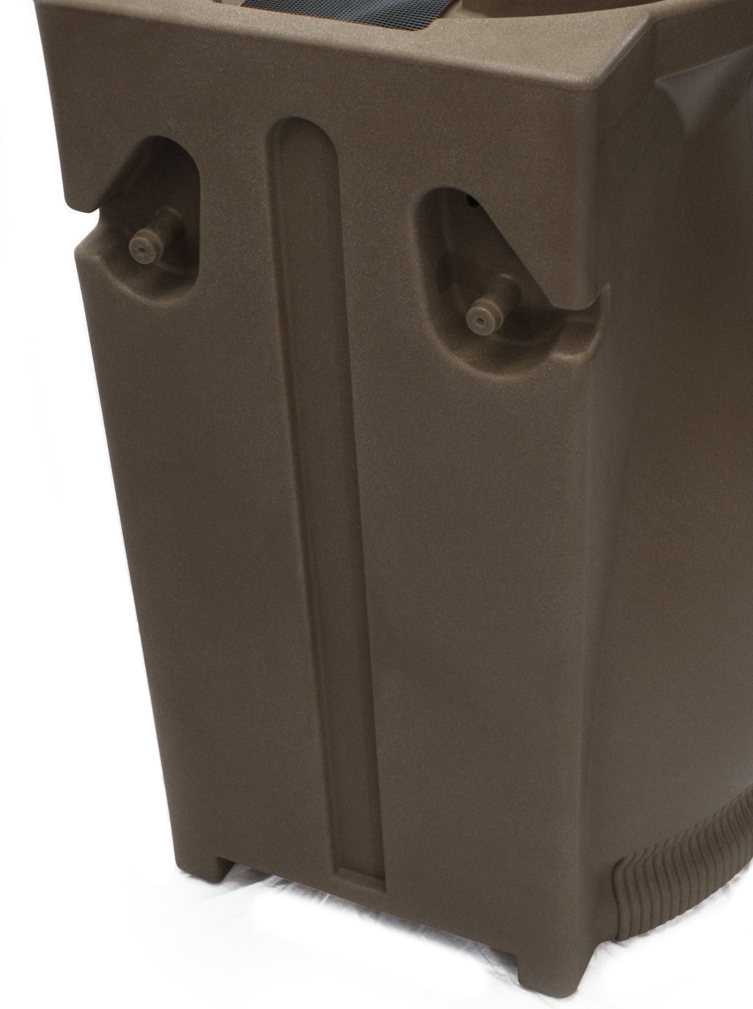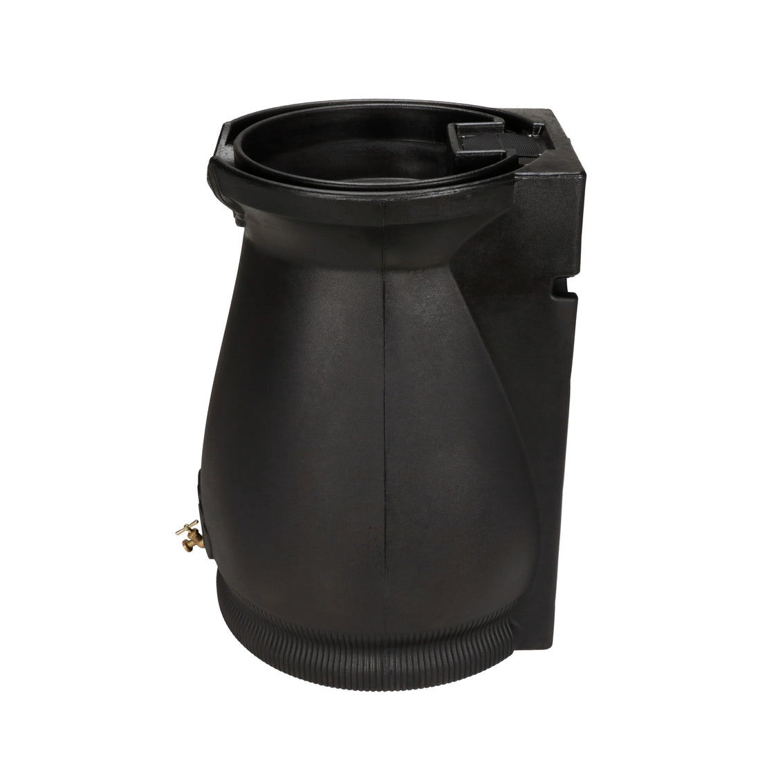 The Rain Wizard Urn 65-gallon rain barrel is both beautiful and cleverly designed. Constructed with thick and durable plastic resin, it will hold up to the harshest elements. With the appearance of a terra cotta urn, the rain barrel's graceful lines, curves, and trim make it a stylish accent piece for your home's exterior. The flat back design allows you to position the barrel close to walls or flat areas. The top is a self-draining planter and includes the Good Ideas original, integrated channel that diverts overflow to the front of the barrel to keep your foundation from flooding. Like all Good Ideas rain barrels, this product is BPA-Free.