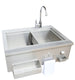 Transform your outdoor kitchen into a full-service bartender station with the KoKoMo 30" Farmhouse Sink. Crafted from durable 304 stainless steel, this versatile setup includes a hot and cold water faucet, bamboo cutting board, insulated 15"x15" ice chest, and a 15"x15" drop-in sink. Additional features include a built-in towel bar, speed rail, and bottle opener. For maximum flexibility, the ice bin and sink can be removed to provide a full 30" sink, making it ideal for BBQs, entertaining, and outdoor meal prep.