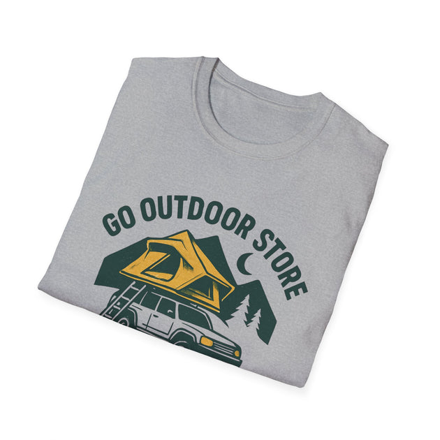 Go Outdoor Store, Adventure Camping T-Shirt - Unisex Outdoor Apparel, Gift for Campers, Hiking Tee, Nature Lover Shirt, Adventure Awaits