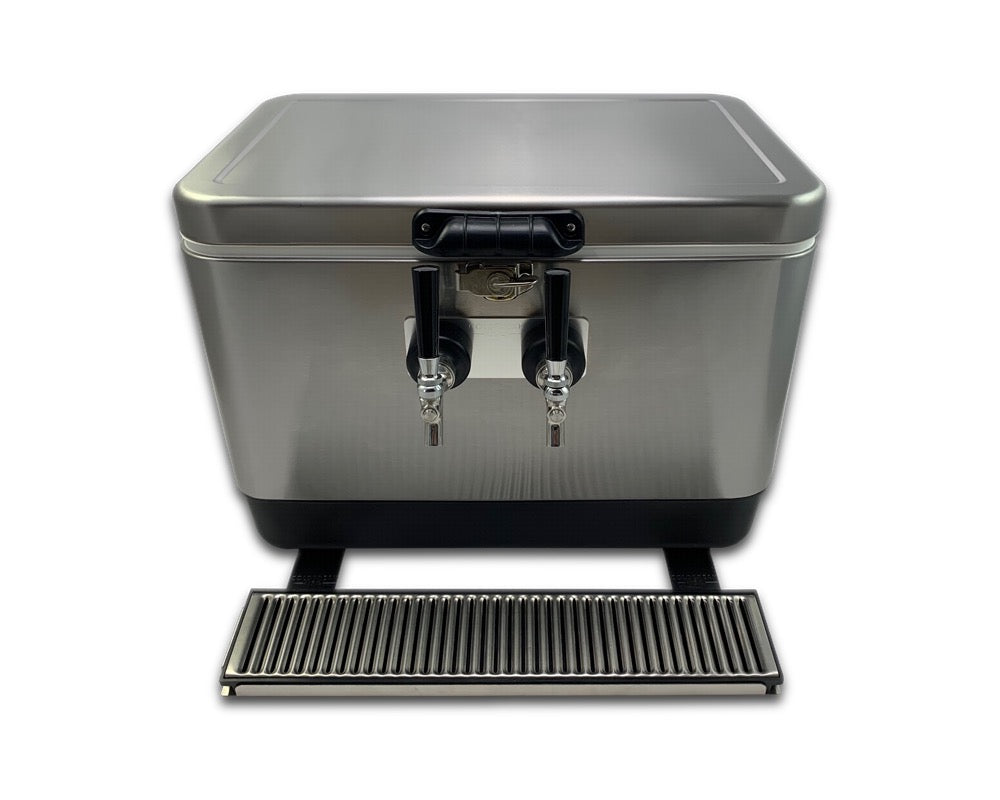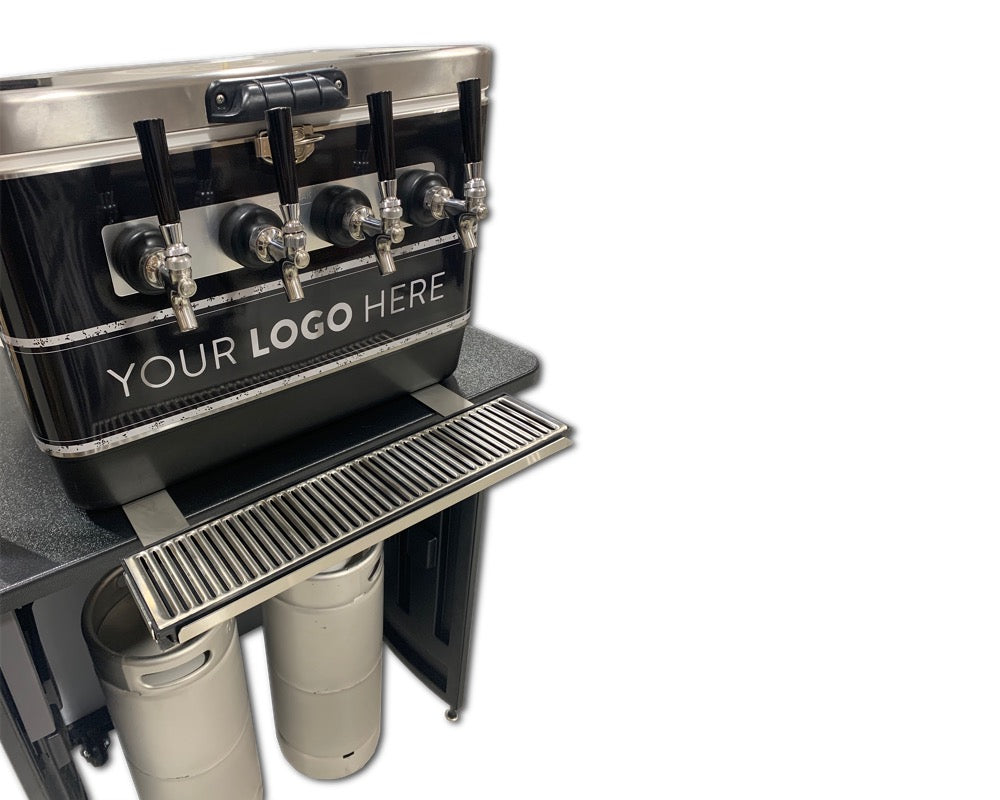Two sturdy “arms” fold out, slide seamlessly under the box, and allow you to position the tray at a convenient level directly below the taps, while also allowing room to neatly manage your draft lines down to your kegs. When done using, simply retract the tray’s support arms, which allow you to store it conveniently inside the box where it fits perfectly on the internal lipped edges just below the closed lid.