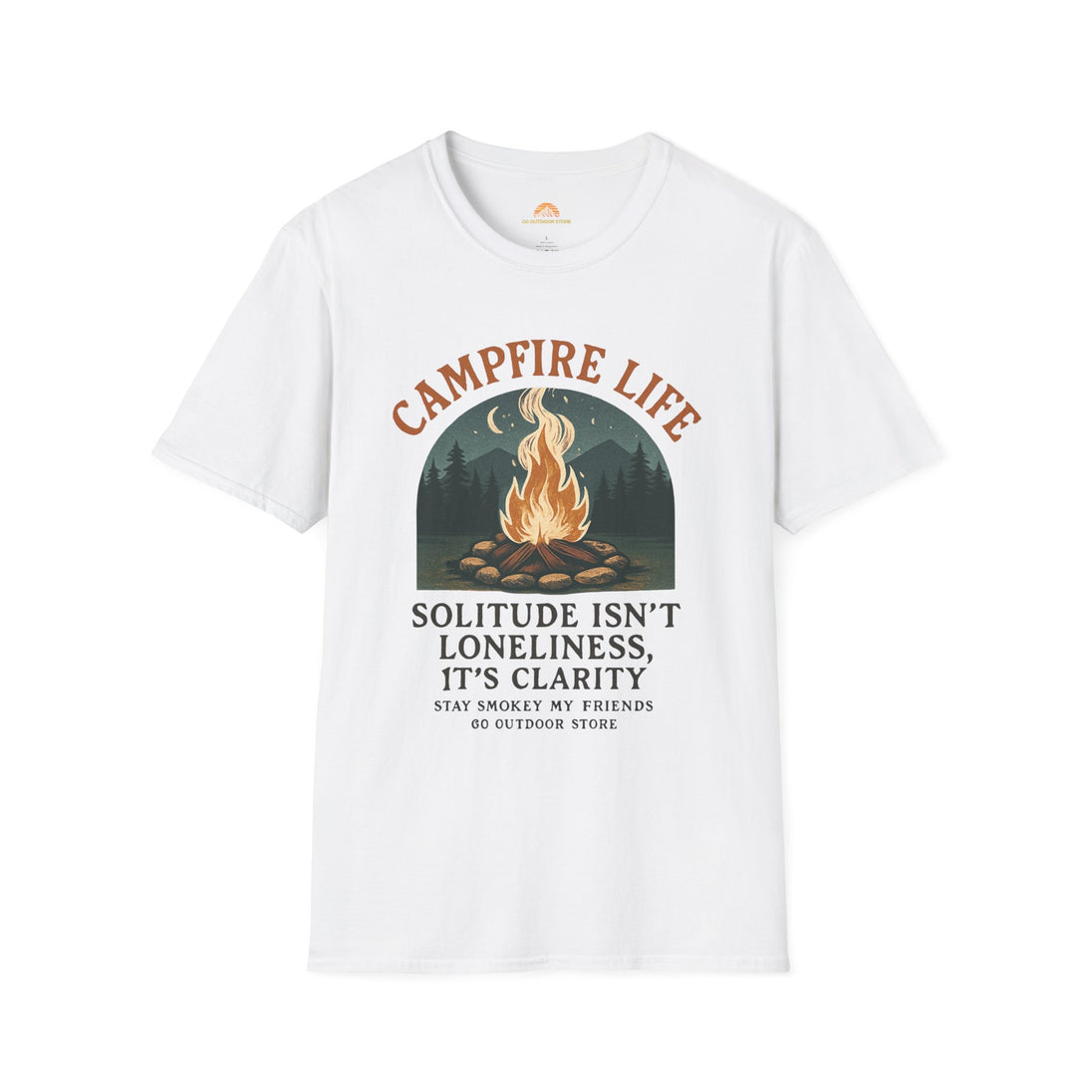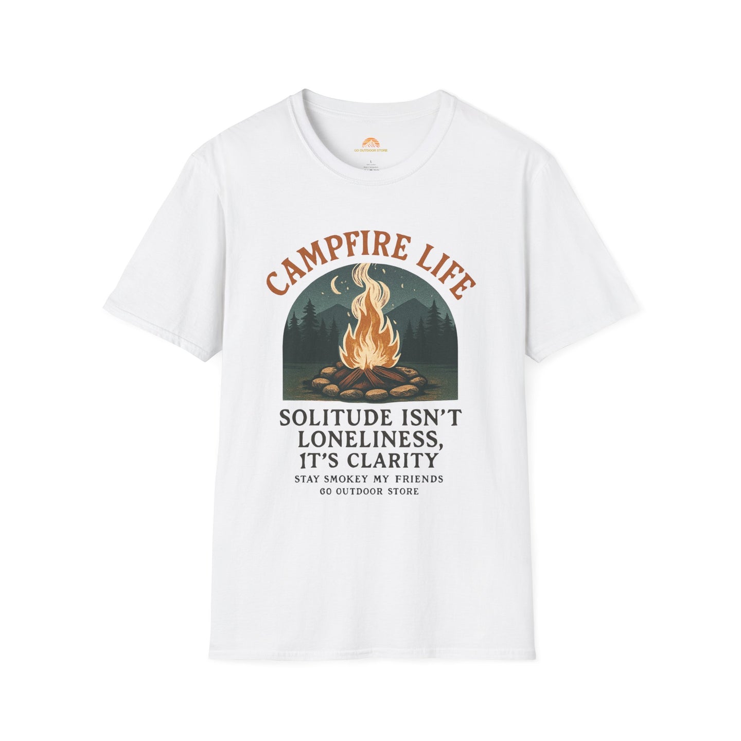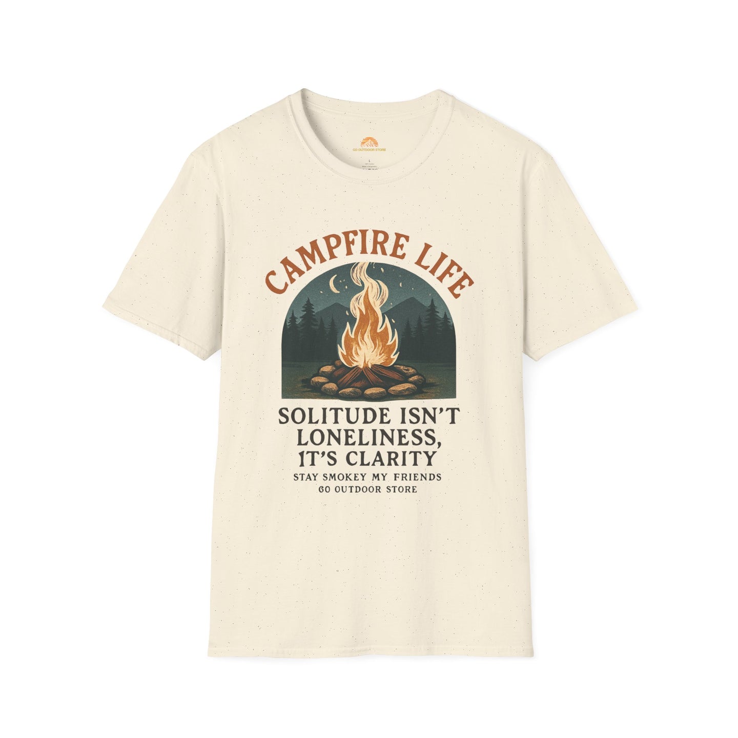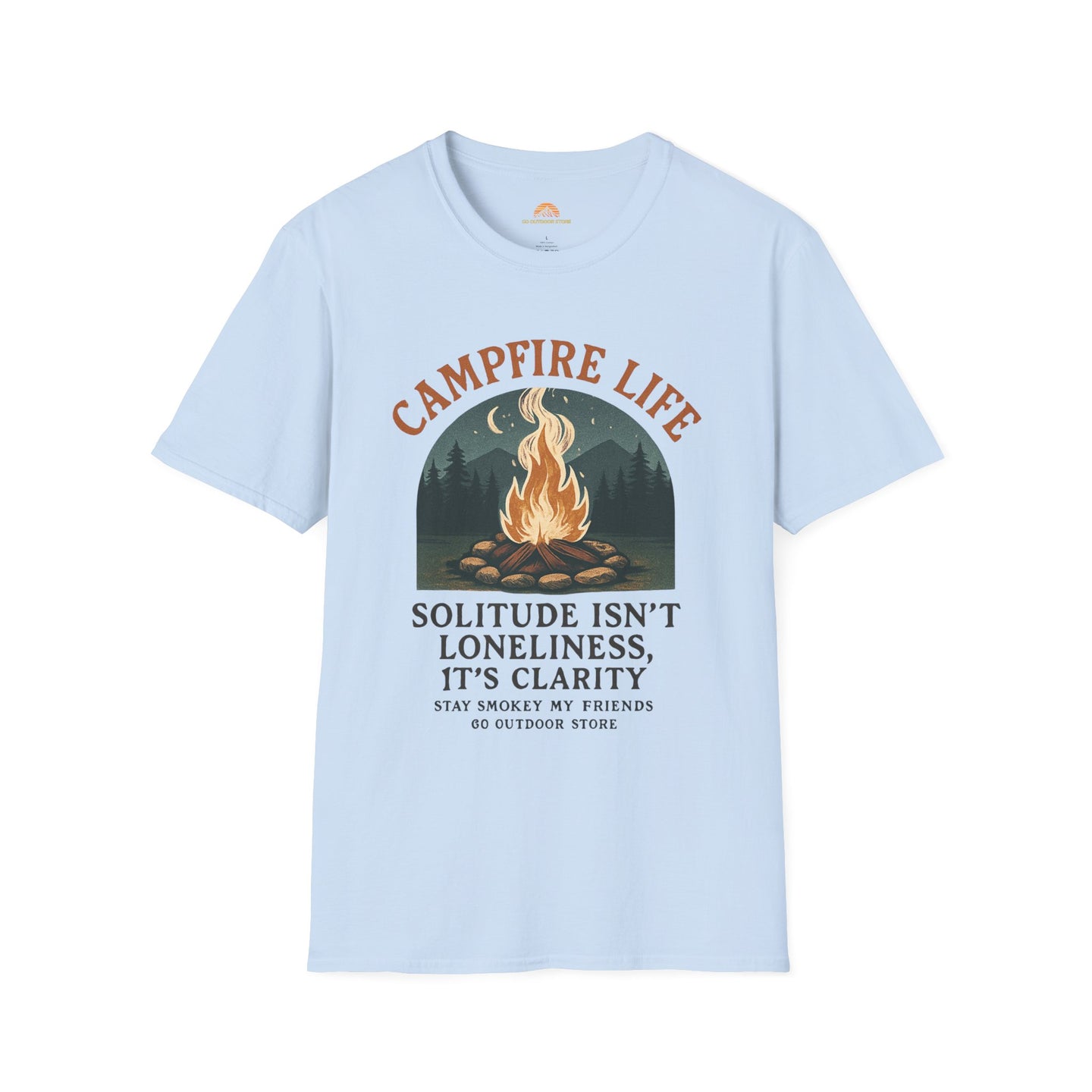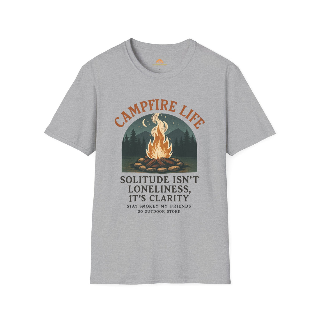 Campfire Life T-Shirt — 'Solitude Isn't Loneliness, It's Clarity' Camper Graphic Tee